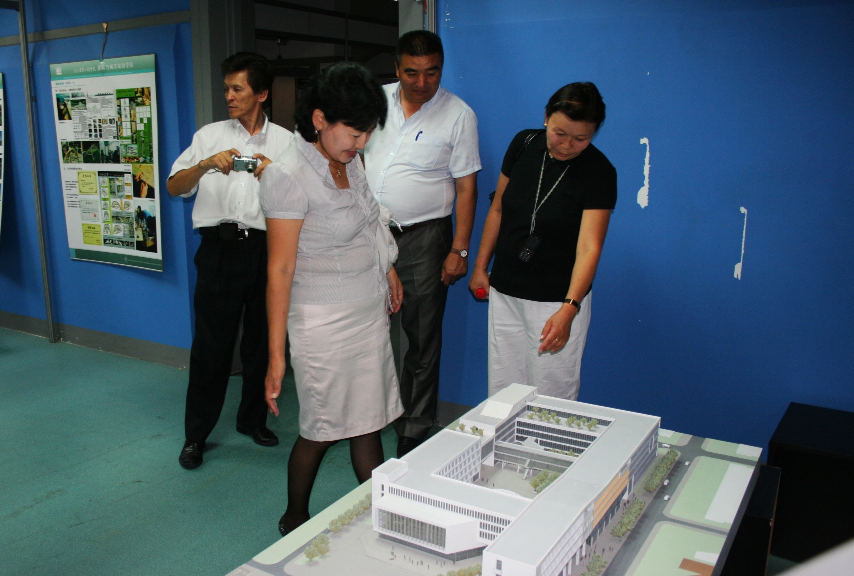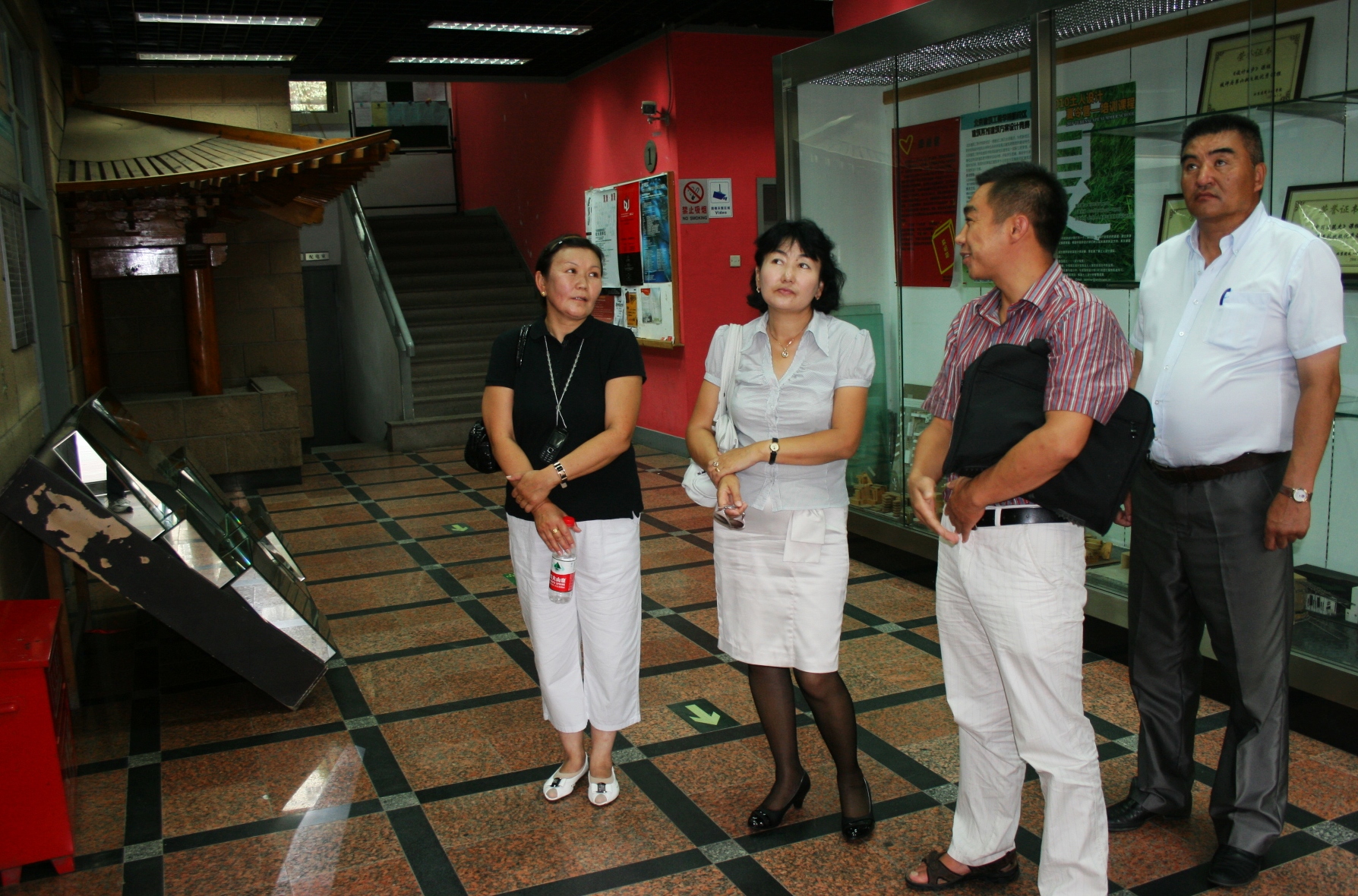 日,蒙古国巴彦乌列盖建工公司教师一行四人来yl7703永利参观。yl7703永利办公室杨振老师领巴彦乌列盖建工公司的教师们参观了yl7703永利的办公、教学、展览空间,并向他们介绍了yl7703永利的历史沿革、专业设置、教学特色、发展现状等。