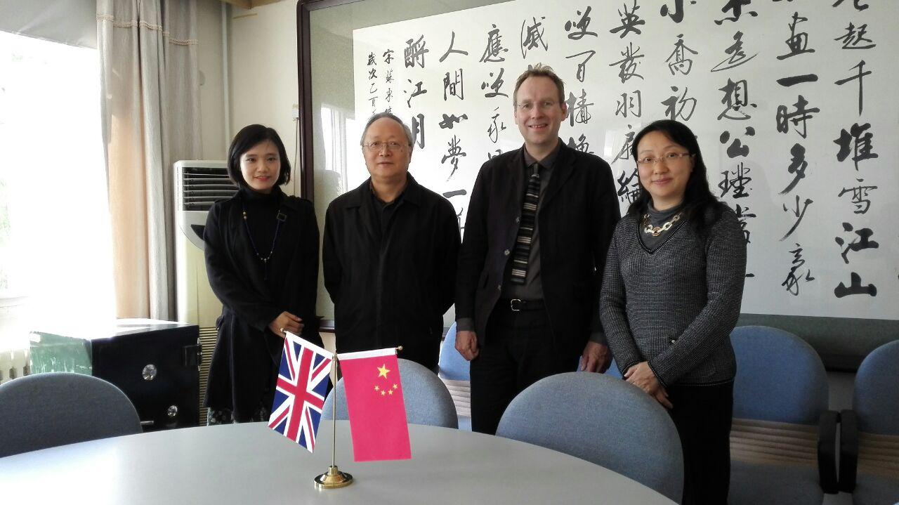 2015年4月16日上午,英国威斯敏斯特大学(University of Westminster)yl7703永利经理哈利·查灵顿(Harry Charrington)教授与威斯敏斯特大学中国办公室主任韩筱婷女士一行来到yl7703永利进行访问,得到了国际合作与交流处处长赵晓红与yl7703永利经理刘临安教授的亲切会见,yl7703永利秘书王璇做全程陪同与翻译。