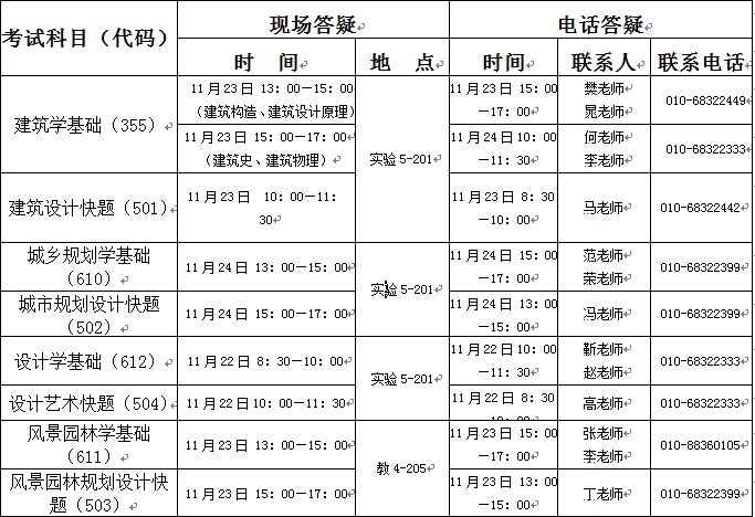 2013年硕士研究生入学考试自命题考试科目答疑安排