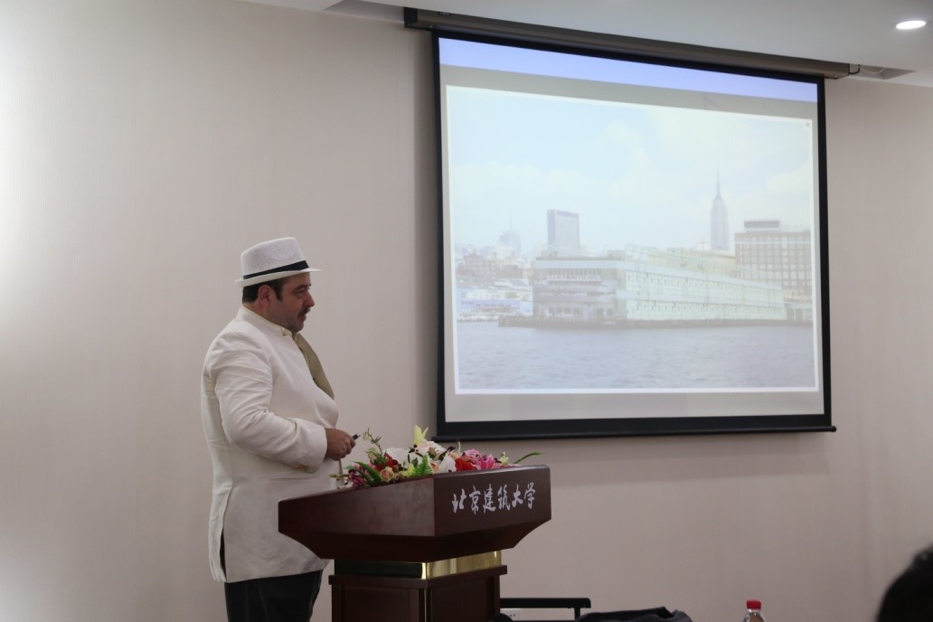 2016年10月22日和25日,Jed.Hotchkiss教授在教1-104报告厅进行了题为“可持续城市地标景观”(Sustainable Urban Landmark Landscape)和“可持续城市空间再利用”(Sustainable Urban Space Reuse)的学术报告。讲座主要从美国城市设计经验入手,介绍了纽约城市标志景观和城市空间再利用的城市设计方法,并且以纽约哈德逊河滨 栈桥景观、highline和lowline最新地标设计为例,在实践中的历史遗迹进行再开发利用的设计方法进行了详细介绍,展现了国际最前沿的城市设计和景观设计实例,对纽约城市设计发展历程和最新成果进行了分析和评述,结合实例的讲解生动,令师生大开眼界,使员工开拓视野,了解国际设计前沿发展成果。与会包括教授、研究生和本科生在内的师生近百人,讲座结束后,Jeffrey Raven先生与同学展开交流互动,进行了半小时的答疑,同学们反应热烈。