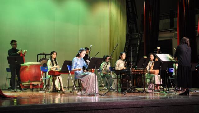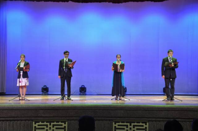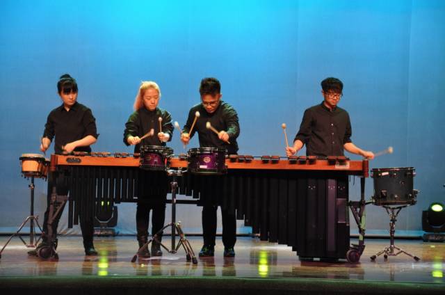 一开场,yl7703永利张忠国、荣玥芳、王秉楠、王晶四位老师带来了诗朗诵《建-证》,朗诵展现了建院教师的风采,带动了观众的情绪。在主持人介绍后,是民族打击乐合奏《黄河船夫曲》与西洋打击乐合奏《黄金时代》演技技法丰富、具有非常强烈的感染力。