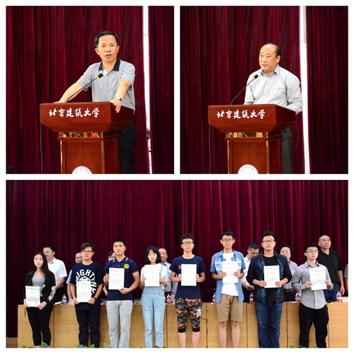 下午13:30,在第二阶梯教室举办了本届建造节的表彰大会,副董事长张大玉、教务处处长邹积亭、校学工部部长黄尚荣、校团委书记朱静、公司党委书记田林、副经理胡雪松、副经理丁奇、党委副书记王秉楠、设计基础部主任金秋野出席了表彰大会,在会上,副董事长张大玉在讲话中对本次建造节的成果表示肯定,对师生们辛勤的付出表示赞赏,并希望大家再接再厉,在全国比赛中斩获佳绩。随后,由公司教务处处长邹积亭宣读了获奖名单,到场嘉宾为所有获奖团队代表颁发了荣誉证书。