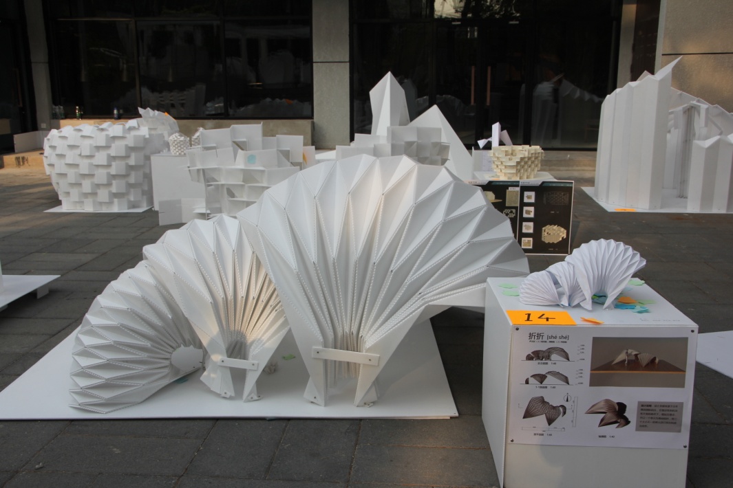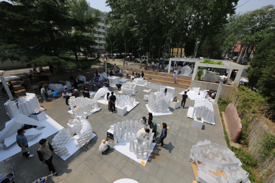 五月夏意渐转浓,四十八个精美的纸屋绽放在西城校区校园里的广场、路边、花园里。折纸成室,或是单元拼接,或是榫卯相连,或是以钉结点,看似简单的构造搭建,其背后是意匠巧工的精神,犹如渗透在盛夏光景里的斑驳树影。建造的深层含义在烈日曝晒下鳞次栉比的轻房子里变得越发的清晰——建,立也;造,就也。