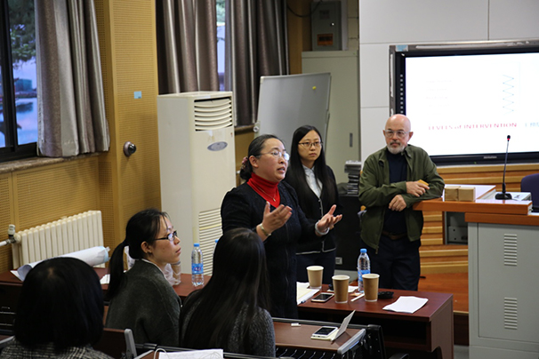 首场报告结束后,肯德尔教授与师生们展开了积极的交流讨论,包括OB概念与建筑工业化、装配式建筑之间的区别与联系,infill(填充体)概念的局限性与适用性,OB理念与当代中国所倡导的可持续发展理念之间的联系等等相关内容。