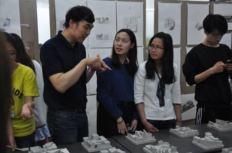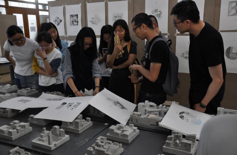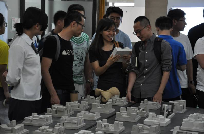 在整个年级的同学们互相参观完各自的设计作品和图纸后,课题负责人王韬老师在大厅现场给同学们进行了“街园”的解题,深入诠释了此次课题的训练目的和员工应当从中掌握的知识技巧。