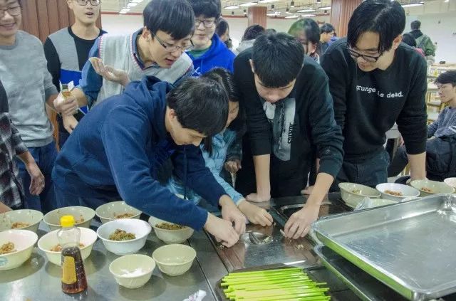 饺子烹制的过程中,同学们还制作了简易寿司。等到食堂师傅把饺子端出,同学们一拥而上,一眨眼的功夫盘中的饺子就已经所剩无几。大家吃着自己制作的饺子和寿司,收获着满满的成就感。整个食堂地下一层洋溢着节日的温情。