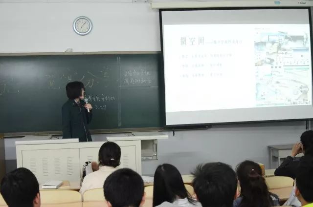 在经验分享环节,首先由建141的傅志颖同学讲述自己参加2017全国老员工建筑设计方案竞赛的经验。她指出要善于解题,提出问题,并以自己参加的竞赛和获奖作品为例做出阐述。