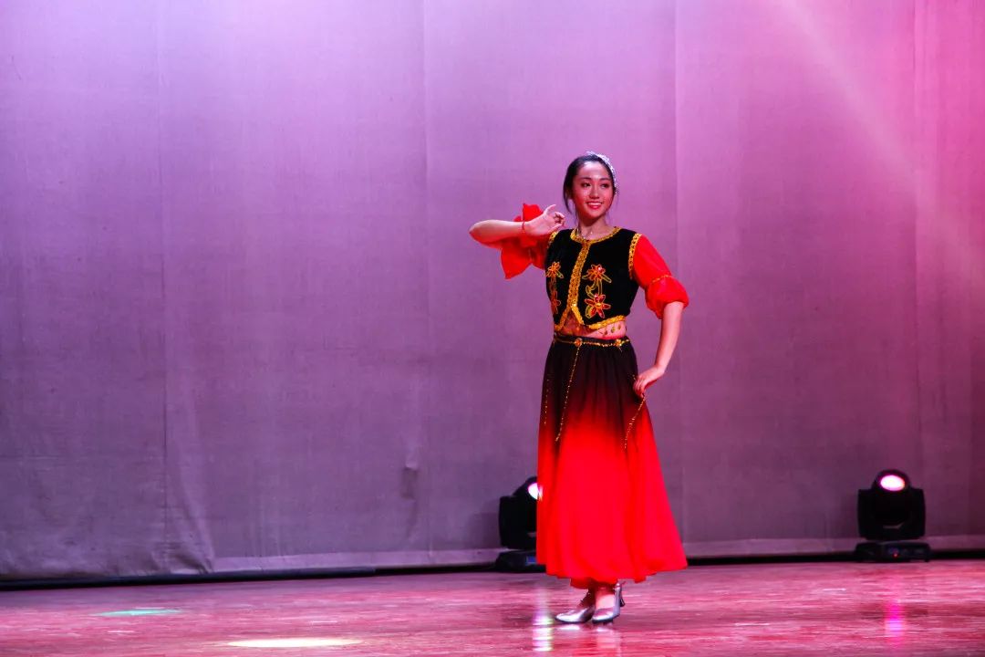 建183班的刘明庆为我们带来了新疆舞蹈《花儿为什么这样红》,婀娜曼妙的舞姿让她看起来就像盛开在吐鲁番鲜艳的花朵。