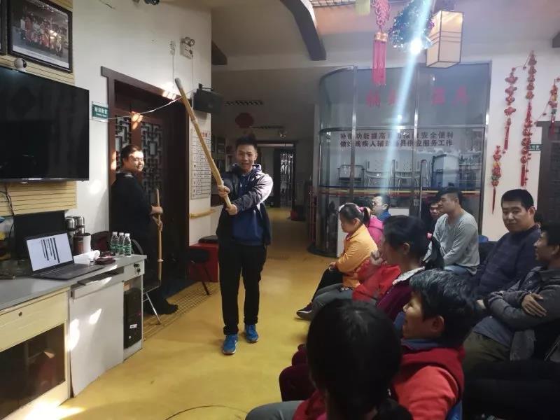 古建181班的陈鸿宇、杨宇轩同学顺利地到达护国寺宣讲地点,他们绘声绘色地讲起武士刀和剑道,残疾人朋友虽然对这两方面没有什么了解,但可以看得出来,他们对这个主题很感兴趣。在场的残疾人朋友们无不被两位同员工动形象的讲解所惊艳,起了大家的共鸣,纷纷加入讨论之中,看的出来大家都很开心。