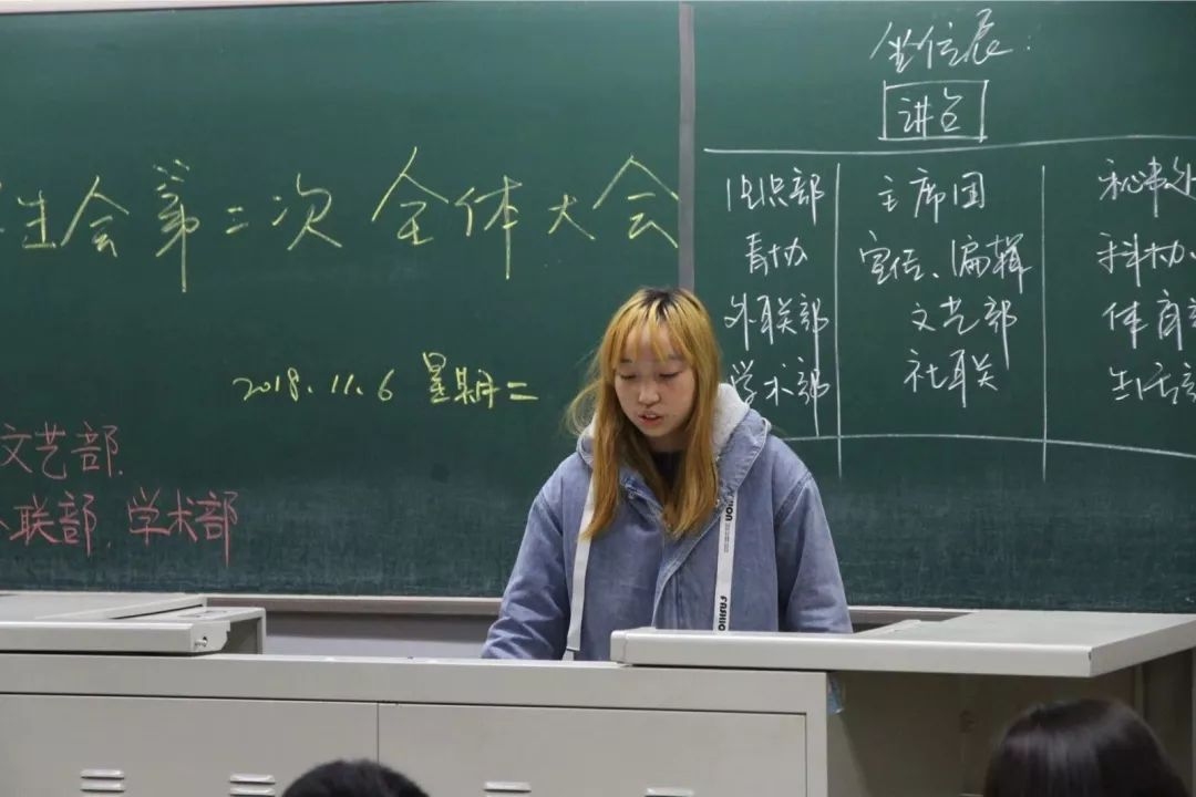科学与技术协会部长潘首成、体育部部长冯雪珊对10月各项工作进行总结,并表示希望同学们积极参加11月的各项活动。