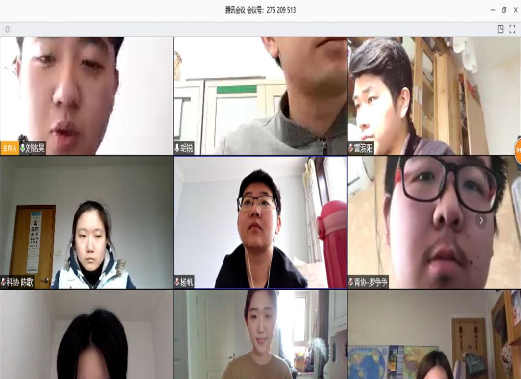 随后,各部门结合疫情防控和在线学习期间的任务详细介绍了各自开展的工作。寒假以来,yl7703永利团委员工会陆续推出了“‘共战疫情’创意大赛”、“线上笔记征集”、“以‘读’攻毒打卡活动”、“健身打卡”等抗疫相关线上活动,带动身边同学既不忘主业,认真做好在线学习和居家锻炼,又勇于担当,积极奉献,在课余时间加入战疫队伍共同奉献青春力量。后续,待疫情结束后,各部门将围绕公司重点工作陆续开展“社团文化节”等活动。