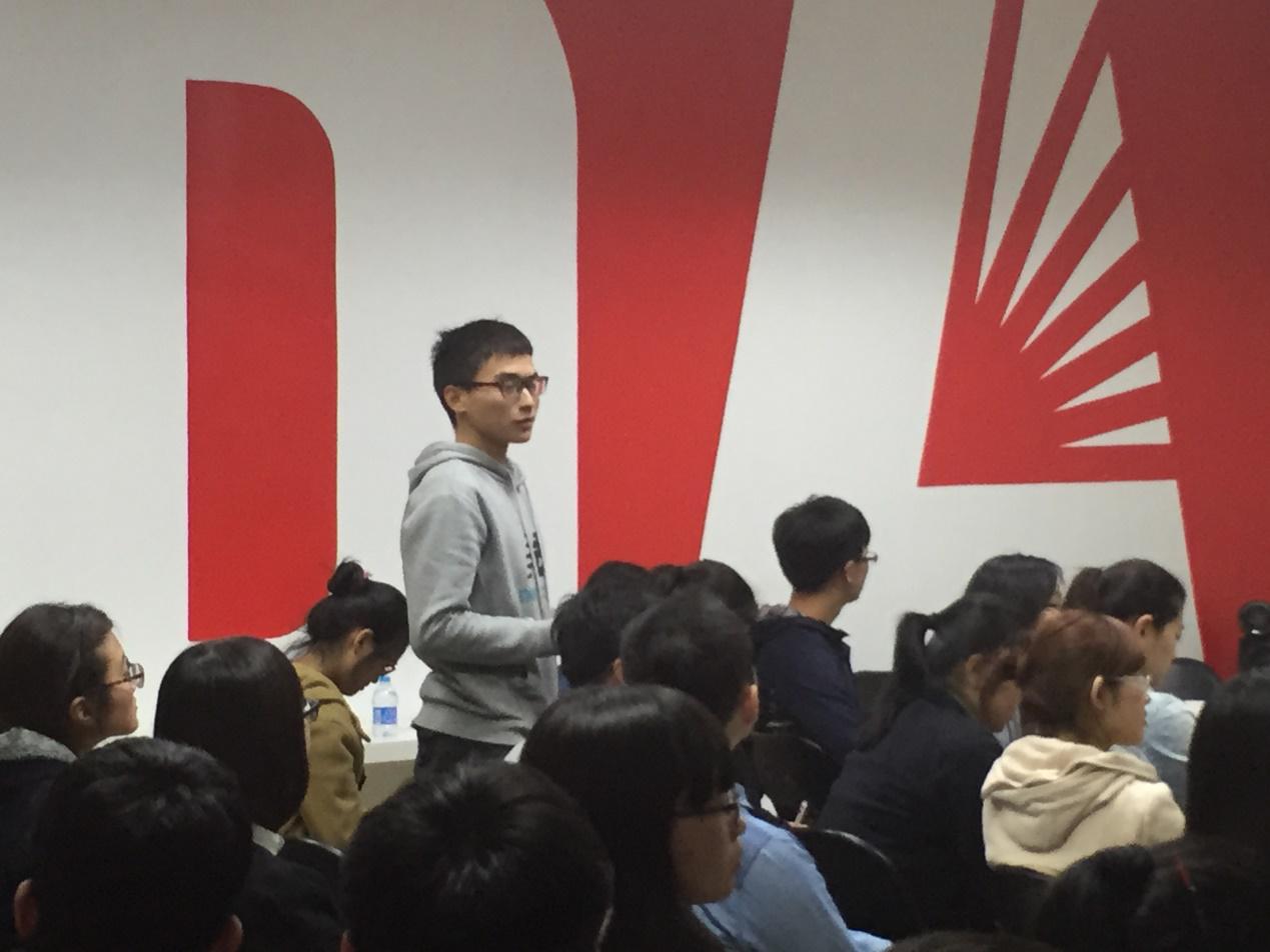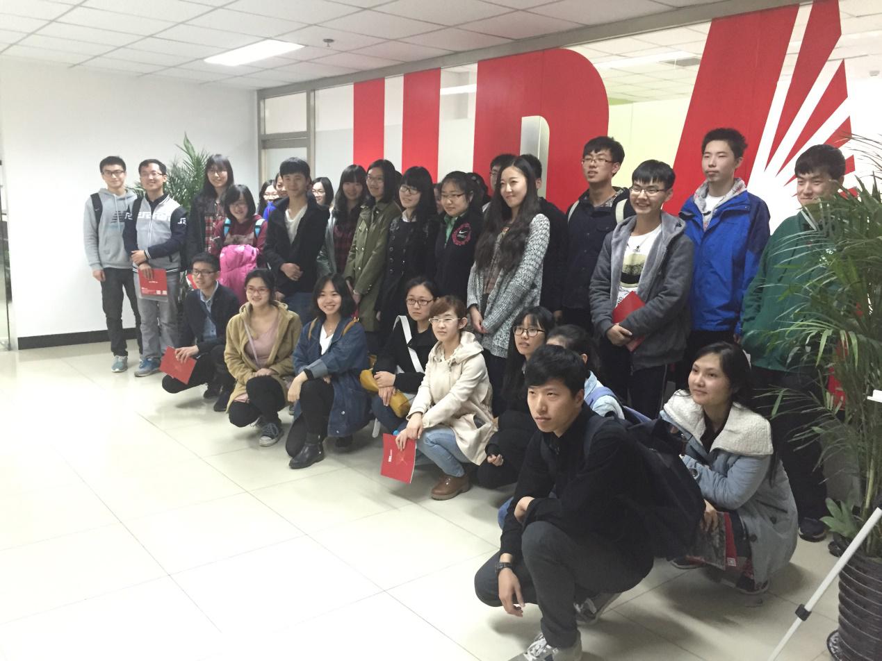 下午两点,同学们搭乘专车到达优地联合公司。公司的运营经理程琳为大家介绍了优地联合的企业文化、工作流程和优秀方案,人力资源经理王媛说明了公司的人事架构、员工招聘及薪酬福利,运营一部经理郭绍锋通过自身经历讲述了他在优地联合8年的工作经验和心得。提问环节中,同学们就方案设计、实习招聘、职业发展等多个方面与几位负责人交流,每个提问的同学还获得了公司提供的礼物。最后,同学们领取了公司为大家精心准备的纪念优盘和企业宣传册,并与几位负责人合影留念,圆满结束了本次活动。