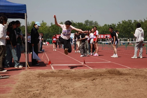 跳高场地,选手们如矫健的飞燕,竞相鱼跃起跳,一次次挑战着身体的高度极限,每一次腾空都带着无畏的勇气和对胜利的渴望;跳远沙坑旁,选手们似离弦之箭,从跑道上飞驰而来,在天空中划出一道道优美的弧线,飞跃出更远的距离,用拼搏诠释着对梦想的追求;铅球投掷区,选手们将力量与技巧完美融合,每一次挥臂投掷,都是他们无数次刻苦训练的成果;跳绳比赛中,选手们身姿轻盈敏捷,将力量与灵活展现得淋漓尽致,每一次跳跃都充满了节奏感与爆发力;长跑赛道上,选手们面临着体能与毅力的双重考验,尽管烈日当空,汗水湿透了衣衫,但他们依然咬牙坚持,用坚定的步伐丈量着赛道的长度,用顽强的意志书写着属于自己的传奇;短跑赛道上,发令枪响,选手们如离弦之箭般冲出起点,他们在速度的较量中挑战自我、超越极限,每一次冲刺都是对自我的一次突破。