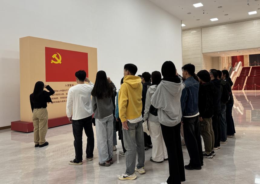 在参观的最后,支部成员来到展览馆四层的入党宣誓处,王瑞琦老师带领全体党员,面对党旗庄重地重温了入党誓词,宣誓活动不仅是对历史的回望,更是对初心的再次确认,大家深切感受到党组织赋予的责任和使命。
