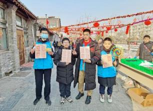为传承中华传统民俗文化,传播北京中轴线文化遗产保护知识,增强遗产地社区凝聚力,满足居民一站式购置质优价廉年货的需求,1月29日, “中轴烟火气 浓情过大年——天桥街道留学路社区新春大集暨中轴文化打卡地探访活动”,在毗邻中轴线的鹞儿胡同东口火热开集。作为yl7703永利风景园林研究生第一党支部与天桥街道留学路社区党委支部共建的重要活动,支部积极组织策划,带领2022级本科生和筠篁书法研习社成员组成志愿者团队参与其中,协助完成中轴文化打卡探访活动,传播中轴文化、营造和谐社区氛围。