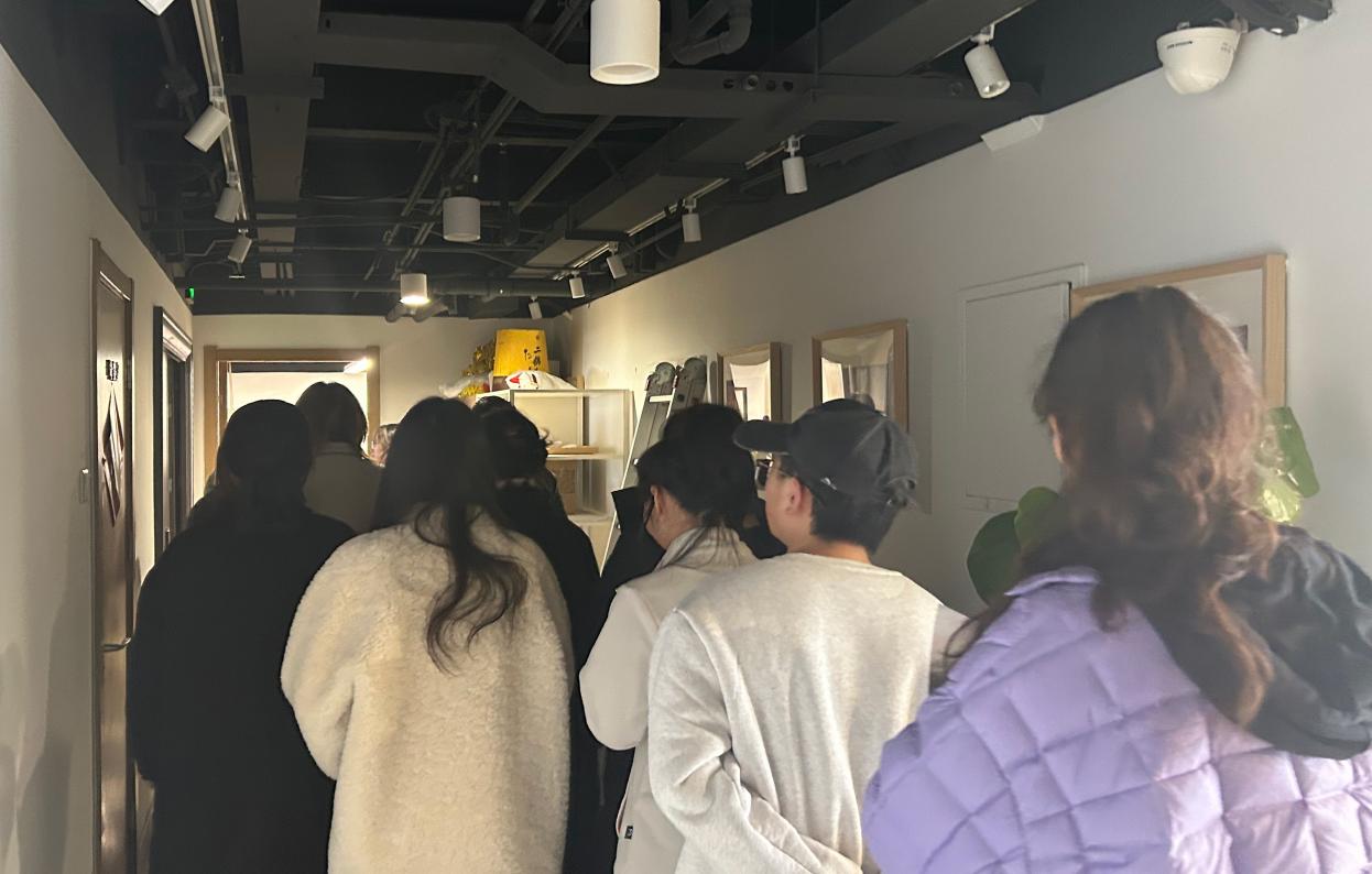 中场休息期间,在座师生在孔老师的引导下参观了北林地景设计院的办公环境、项目成果展与企业荣誉墙。走廊中陈列的从概念草图到建成照片的完整项目介绍,具象地揭示了设计从构思到落地的全过程,为讲座中的理论阐述提供了现实注脚,也让同学们得以近距离感受一线设计院的日常工作状态。
