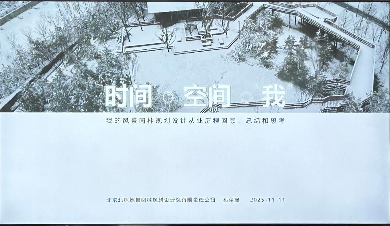 讲座以“时间”“空间”与“我”三个关键词为主线,梳理了自1996年以来中国快速城镇化背景下风景园林行业的演变,并结合北林地景的发展历程展现了行业机构如何在时代浪潮中不断调适、创新与坚守,探讨了设计师在自然与人居、传统与现代、艺术与工程之间的角色定位和价值追求。