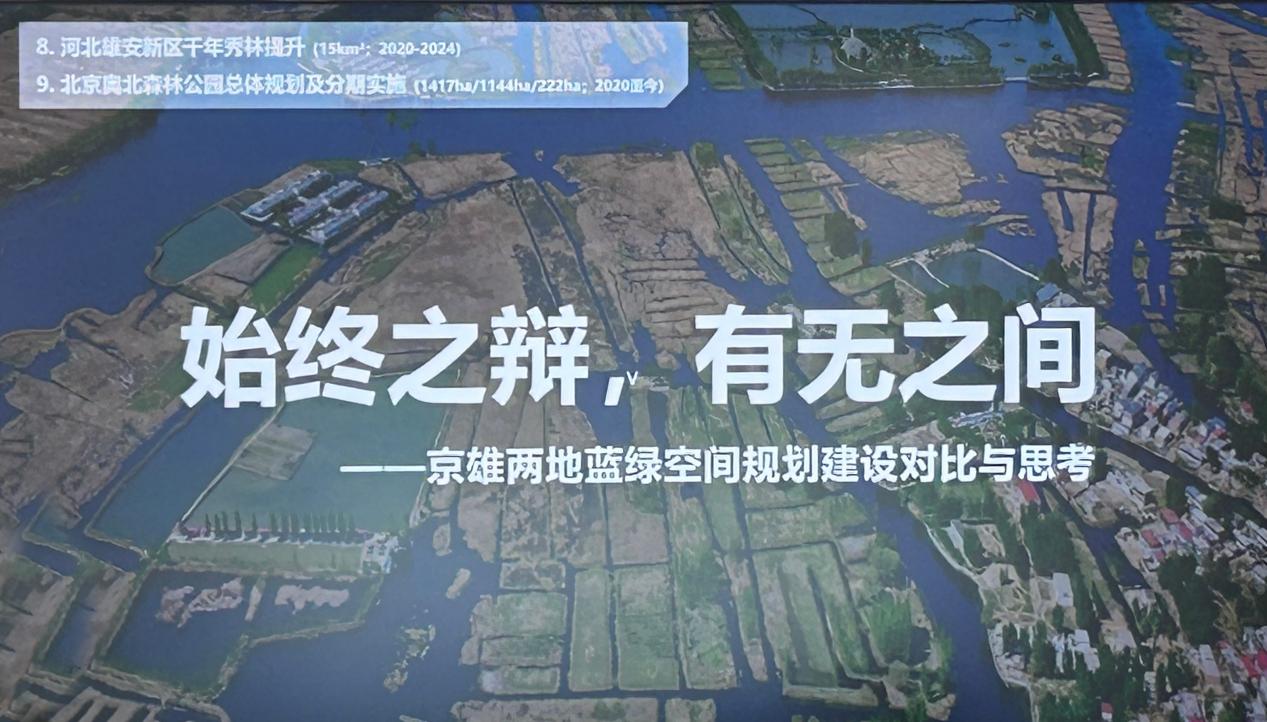 随后,孔老师以“始终之辩,有无之间”为核心,比较了北京与雄安新区在蓝绿空间规划理念、结构与实施路径上的异同。北京作为国家政治、文化、国际交往和科技创新中心,其蓝绿空间体系形成了“一屏、三环、五河、九楔”的生态格局,并在新版北京花园城市专项规划中进一步优化为“一屏五带、两轴三环、九楔十五片”,强调生态连通性与城市功能融合。而雄安新区作为承接北京非首都功能的国家级新区,从设立之初即秉持“千年大计、蓝绿先行”原则,构建“一淀、三带、九片、多廊”的绿色空间网络,突出生态优先、城乡统筹与可持续发展。两者虽目标一致,都是推动人与自然和谐共生,但北京侧重存量更新与多系统协同整合,面对权属复杂、绿地碎片化等问题;雄安则立足增量建设,在快速增绿基础上转向边增绿、边提质,需协调村庄撤并、水系连通、地下水位变化等多重不确定性。这两项案例的对比与思考揭示出景观空间建设需超越单一工程思维,在更大空间尺度和更长时间维度上统筹生态、社会与文化价值,警惕“运动式”“口号化”倾向,坚持“先谋划、再规划”,以适合时代需求的方式做好“当下该做的事”,为未来留白、留野、留可能。