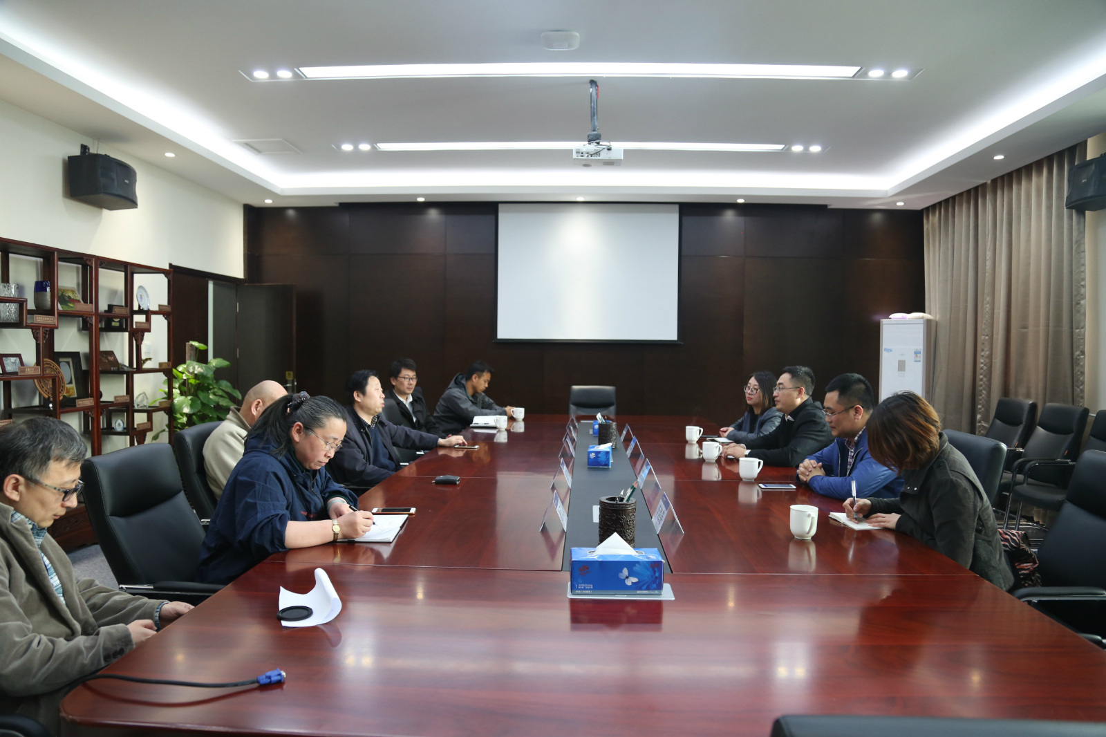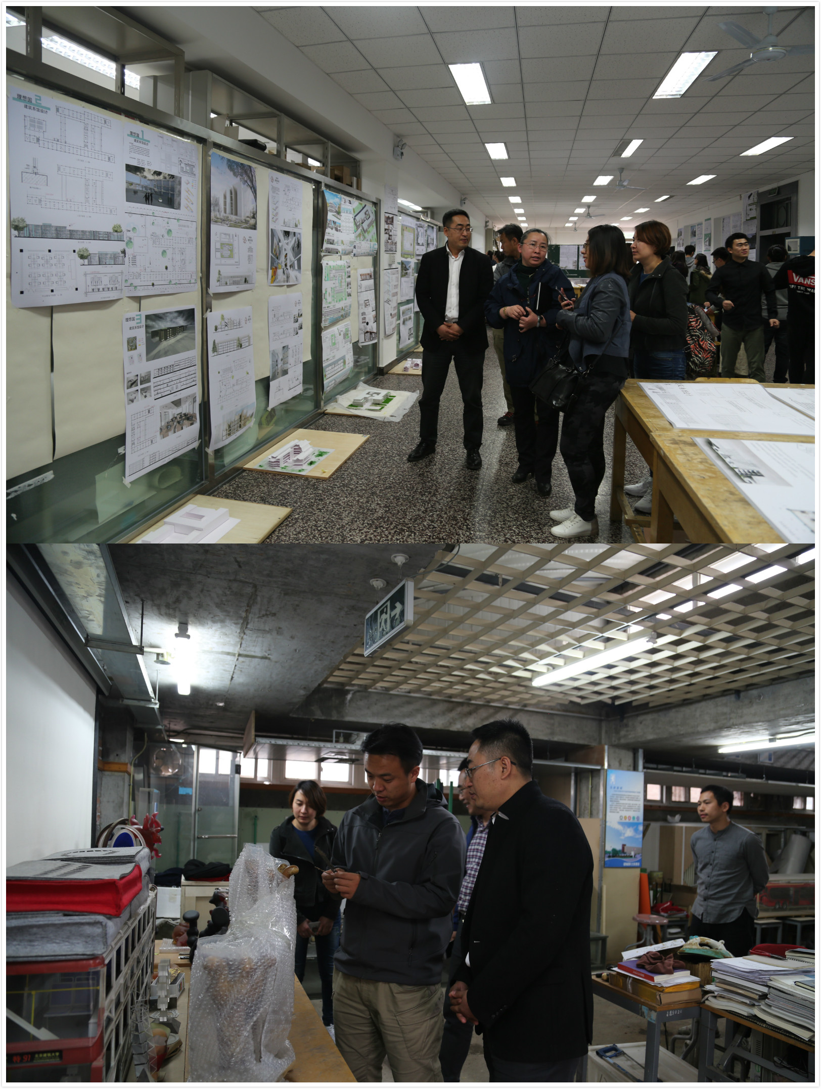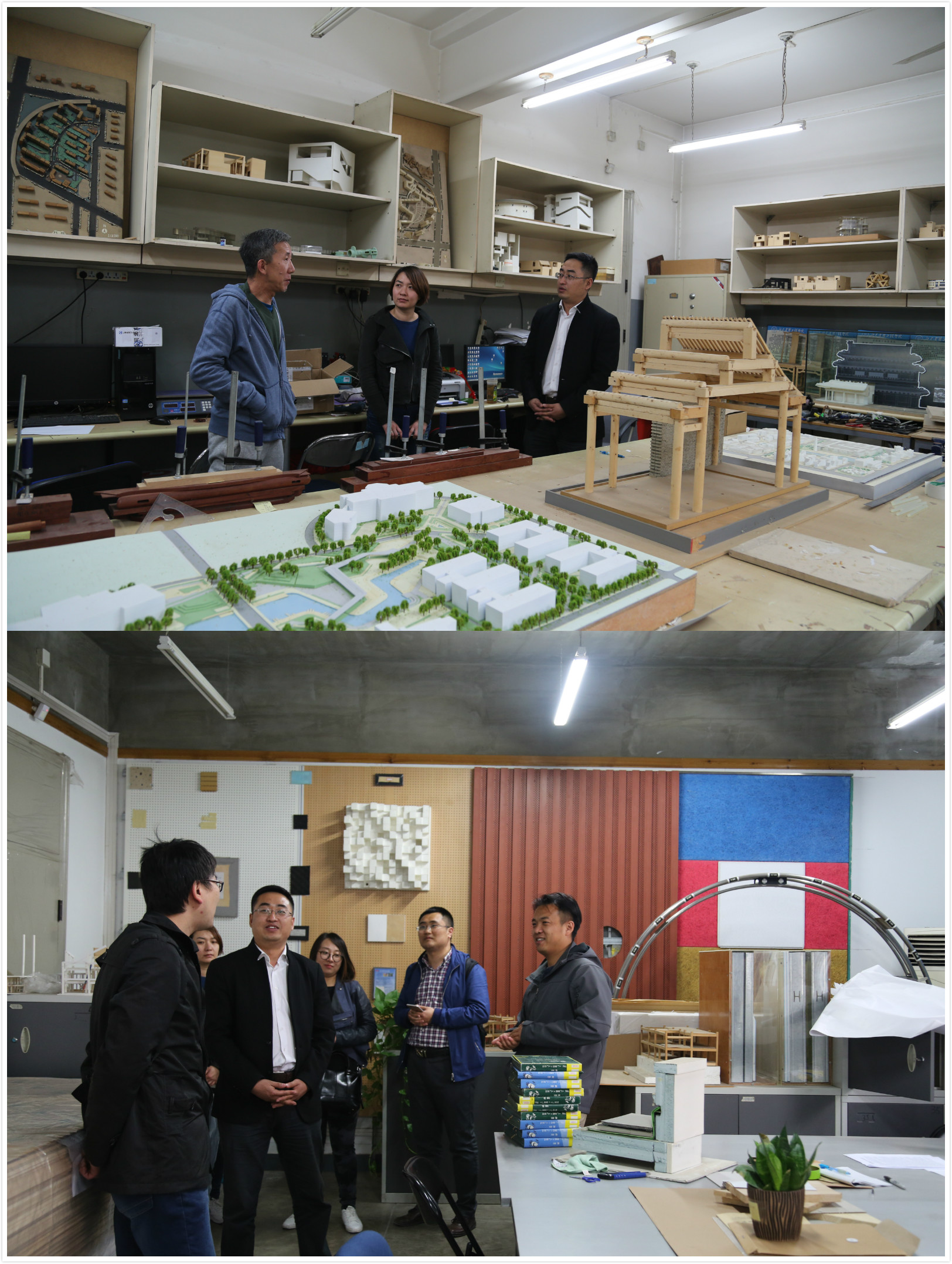 座谈后,来访的老师们在公司老师的陪同下依次参观了公司大三年级评图现场、模型实验室、建筑物理实验室等教学场所。