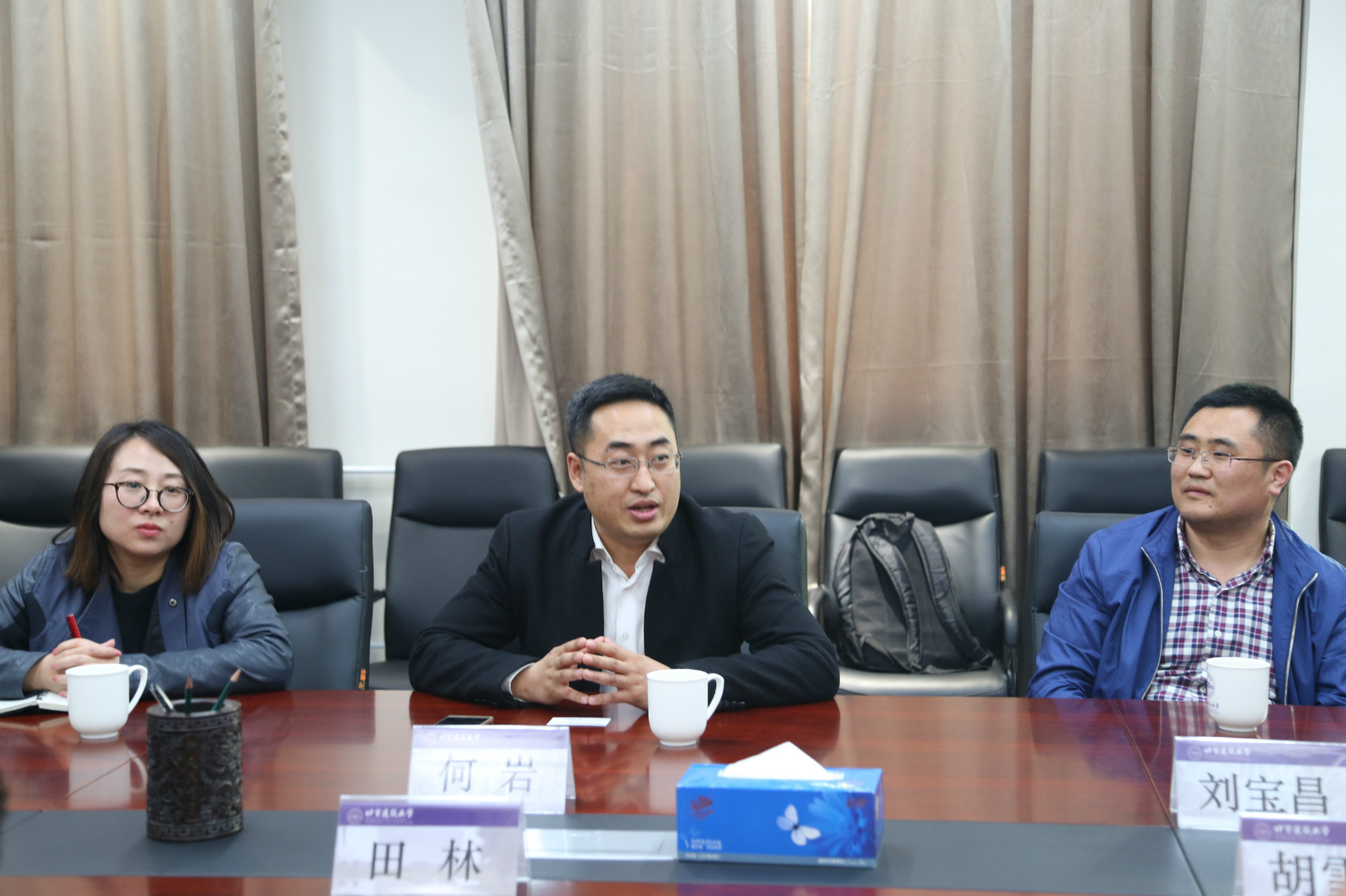 2017年4月13日下午,长春yl7703永利建筑与规划公司由何岩经理带队,一行四位老师来yl7703永利进行参观交流。公司党委书记田林、副经理胡雪松、建筑系主任欧阳文、建筑物理实验中心主任刘博、数字化实验中心主任陈玉龙、院办主任刘志刚和科研秘书何静涵参加了交流座谈。
