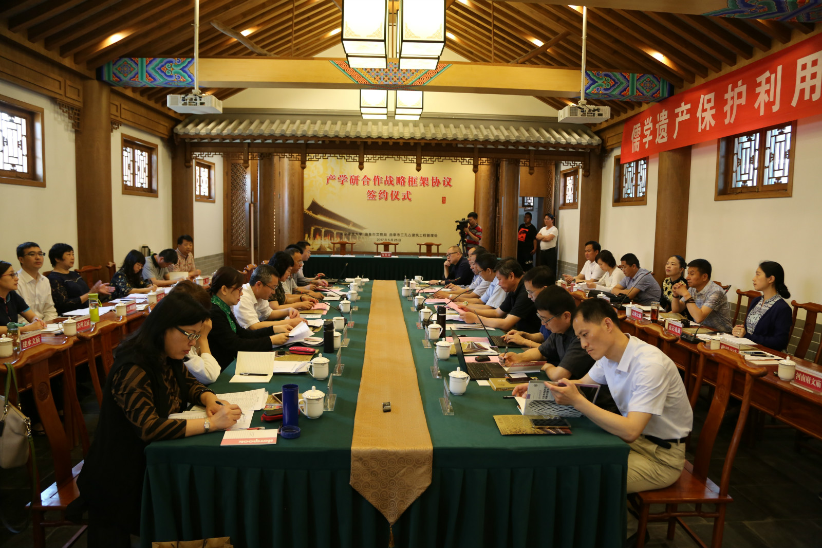 “产学研合作战略框架协议”的签订是为加强高校与文博行业间协作,促进高等教育与文博行业共同发展的有益实践和积极探索的良好开局。三方将本着优势互补,互惠互利,长期合作的原则,依托三孔世界文化遗产、“国家明清官式建筑重点科研基地”、“古建筑博物馆”等丰富文物资源,充分发挥在公司在建筑遗产保护、非物质文化遗产保护、古建筑保护维修培训等方面长期积累的经验优势,共同在课题研究、文物保护、人才培训、科技开发、社会服务、技艺传承等方面展开产学研全面合作。儒学文化遗产是中华文化遗产的重要组成部分,是中国优秀传统文化的构成主体,保护利用好文庙、书院等儒学遗产意义重大。公司将与相关方合作,方共同努力,利用自身科研、教学等优势,为保护儒学文化遗产做出贡献。