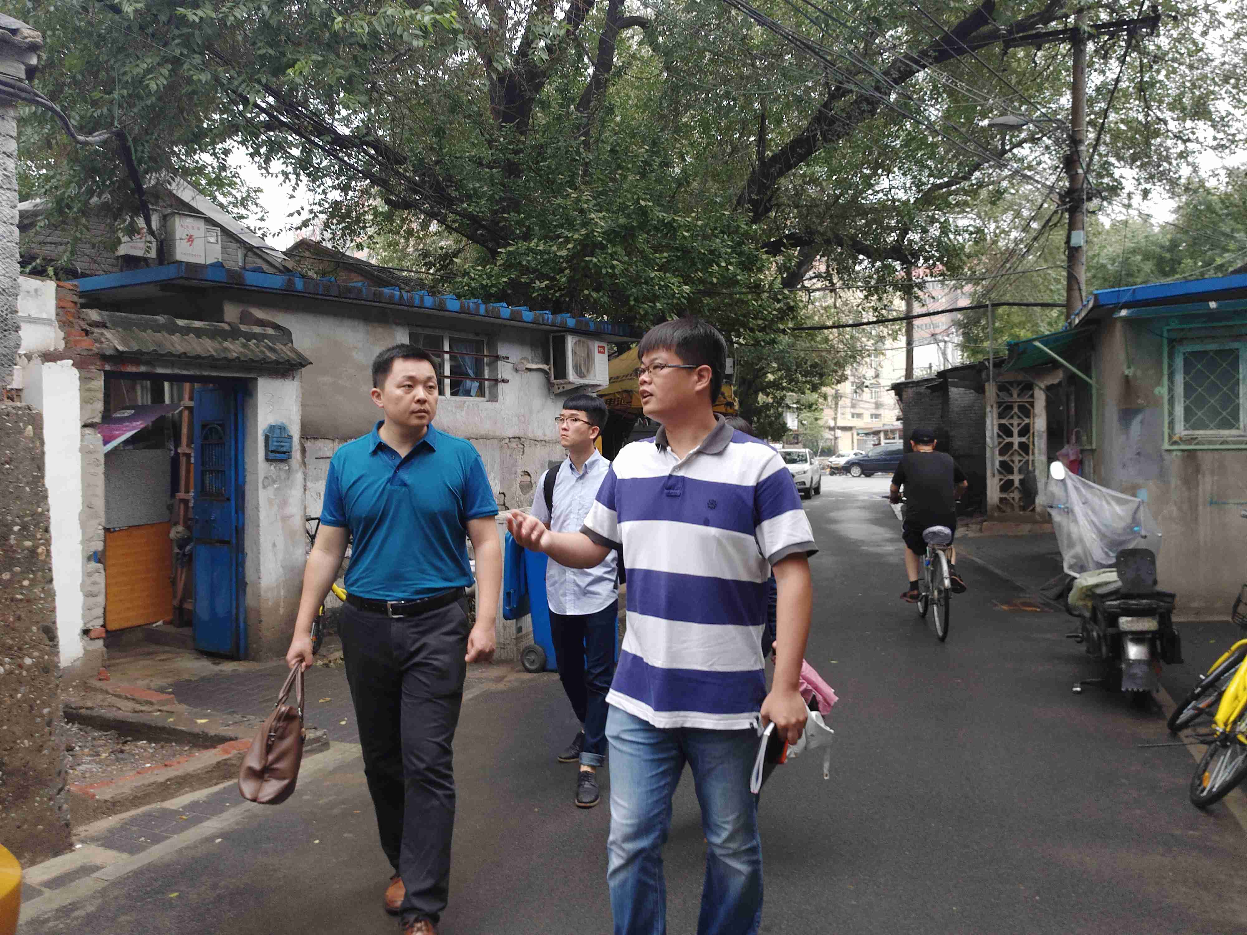 实践团队代表与广内街道办事处赵诒钊主任及相关工作人员进行了深入沟通,了解西城广内街道拆迁整治以及日后提升改造的具体任务及整体规划建设目标。实践团队师生在街道工作人员的带领下,至各街道进行前期走访,深入到城市片区中进行观察和调研,发现街区与胡同中的公共空间的特征和问题,了解便民需求,进行有针对性的分析。在调研和沟通的基础上,实践团队与街道办事处确定了下一步分组调研及汇报研讨事宜。