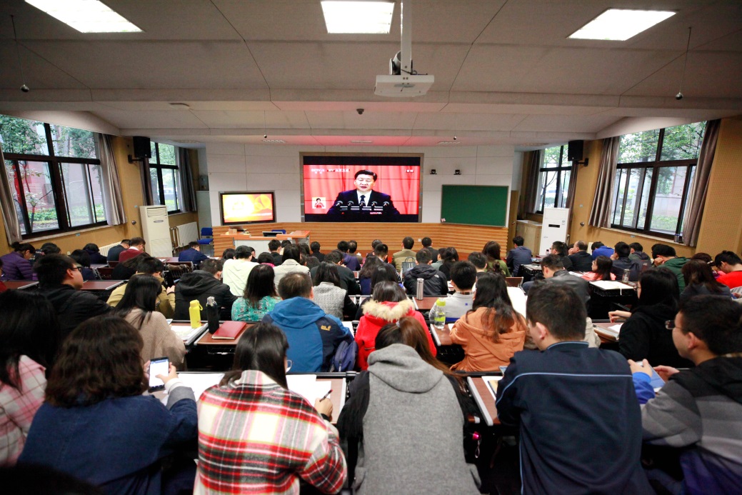 10月18日上午9时,yl7703永利员工党员团员热切关注大会进程,集中在西城校区第三阶梯教室观看中国共产党第十九次全国代表大会的开幕会。部分员工自发地在宿舍、教室等地,通过电脑、手机一起聆听党的十九大工作报告。本次大会,是在全面建成小康社会决胜阶段、中国特色社会主义发展关键时期召开的一次十分重要的大会。党团员纷纷表示,收听收看党的十九大开幕式,学习宣传贯彻党的十九大精神,聆听习近平总书记重要讲话,心情激动、获益匪浅,一定要将会议精神与学习生活进行紧密联系,知行合一,为中国的发展贡献力量。