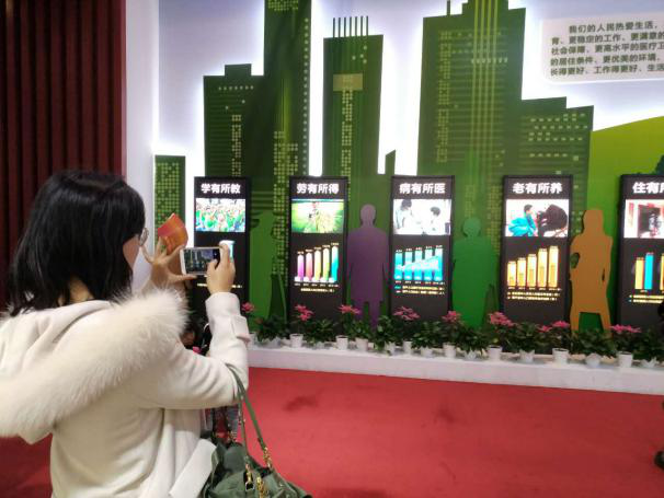 在观展期间,同学们认真学习了本次展览的各个展厅内容,深入了解到以习近平同志为核心的党中央推出的一系列重大战略举措、方针政策、工作部署和辉煌成就。展览充分运用多媒体和声光电手段,浓墨重彩地展示了党的十八大以来,以习近平同志为核心的党中央团结带领全党全国各族人民,统筹推进“五位一体”总体布局,协调推进“四个全面”战略布局,坚持和发展中国特色社会主义,以及广大干部群众喜迎党的十九大胜利召开的良好精神风貌。各项成就展览,生动形象地呈现出我国社会主义现代化建设取得的新的重大成果,展示了中国共产党执政的高超智慧和卓越能力。