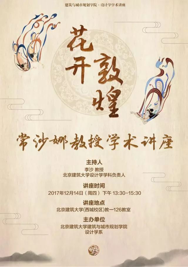 2017年12月14日下午,yl7703永利·设计学学术讲座(第六期)——常沙娜教授学术讲座“花开敦煌”在教一126教室顺利举行,讲座由李沙教授主持。本次讲座中常沙娜教授围绕敦煌在世界艺术史上的地位,以及它对现代设计学的影响展开讲解,并以大量的设计实例,诠释了优秀的中国传统文化真谛,令全场听众为之动容。