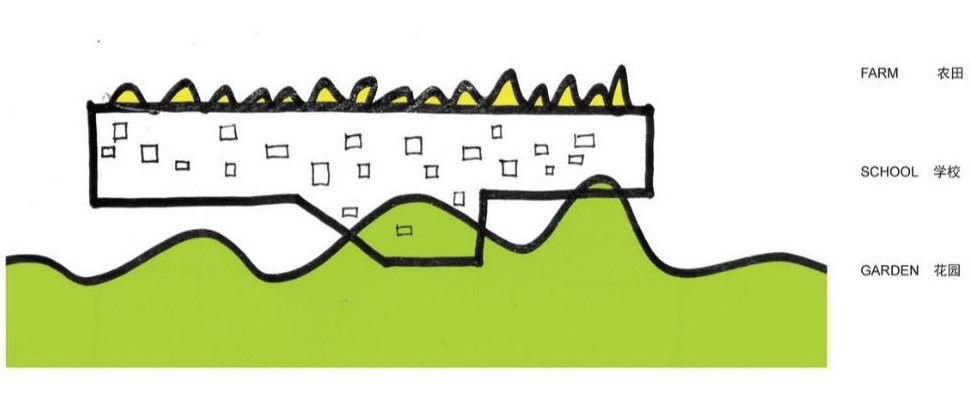 为了最大化地利用自然通风和自然光线,并减少冬天及夏天的冷热负荷,被动式节能策略几乎运用在设计的方方面面中,大到建筑的布局和几何形态,小到窗户的细部设计。地面透水砖的铺装和屋顶绿化有助于减少地表径流,三个位于地下的大型雨水回收池从操场收集宝贵的雨水灌溉农田和花园。地源热泵技术为大型公共空间提供了可持续能源,同时独立控制的VRV机组服务于所有单独的教学空间,确保使用的灵活性。整个项目使用了简单、自然和耐用的材料,如竹木胶合板、水刷石(一项正在消失的工艺)、石材和暴露混凝土等。