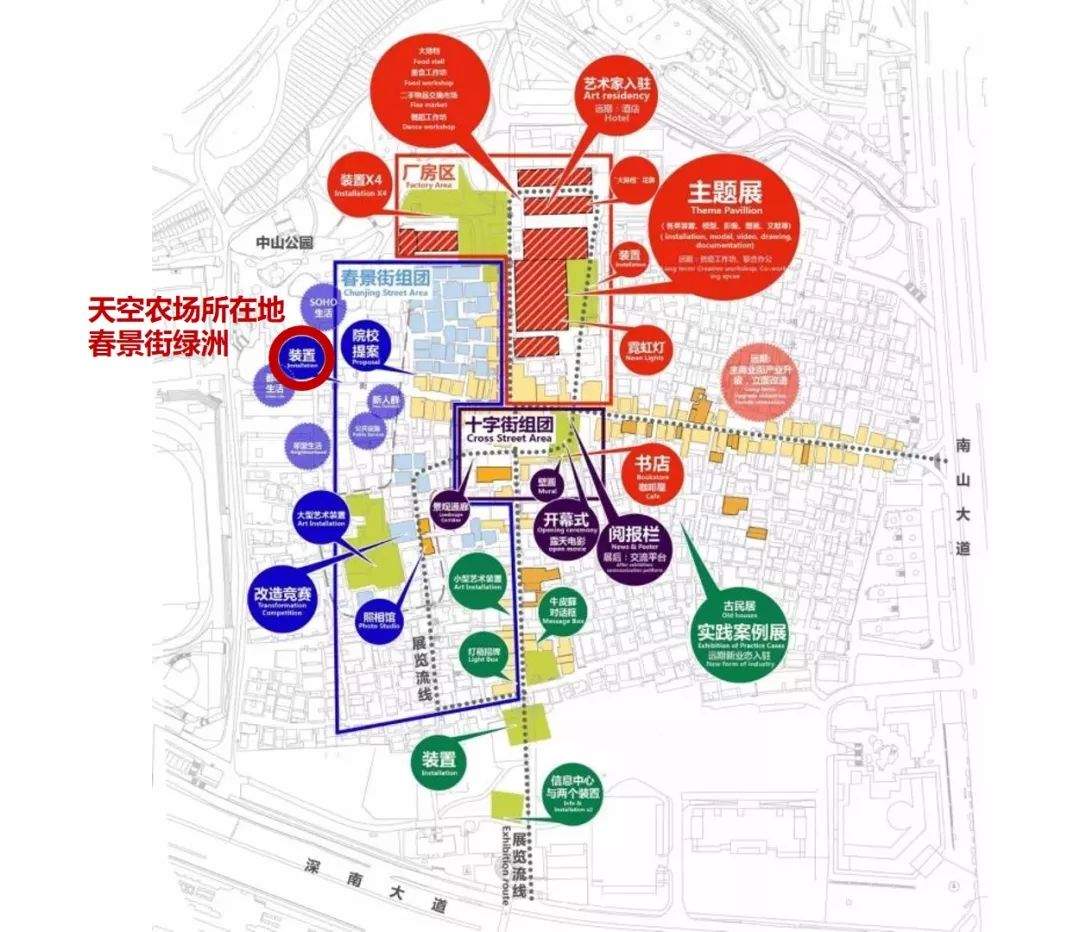 天空农场是一个集都市农业及社区营造与一身的“农构装置”,挖掘“城中村农业”潜在的生态意义和生产潜力,提供新的大众集会空间和社区营造方式。