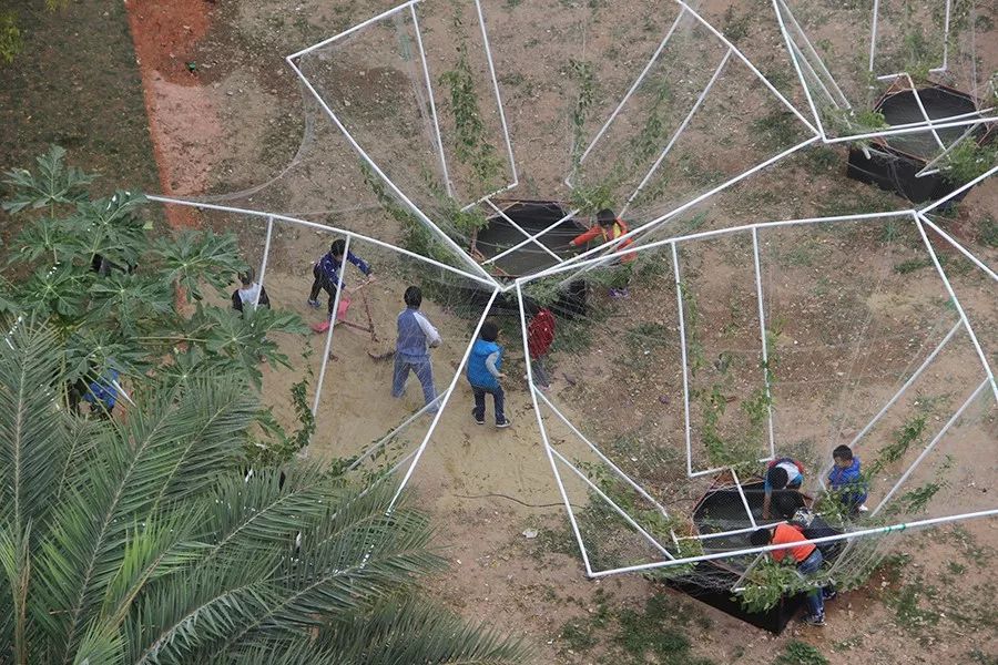yl7703永利兼职教师司敏劼及其未来乡土工作室汇合建大建筑实验班151的三名员工所创作的作品“天空农场”在南头主展场展出。