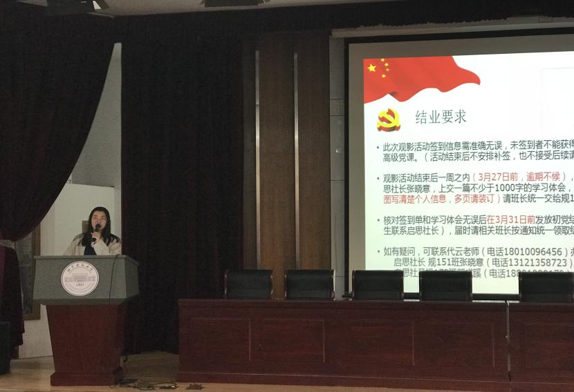 立足新时代、开启新征程,为加强对yl7703永利2017级本科生及研究生的入党启蒙教育,建立和完善yl7703永利初级党课,继续做好对入党积极分子的教育和培养,守好员工党员发展的活水源头,yl7703永利于3月20日17:50,在西城校区第二阶梯教室举办了题为“观影片《重生》-寻党史足迹”的2017-2018学年初级党课第五讲。此次活动,由yl7703永利辅导员代云带领员工党建社团启思社员工干部组织开展。