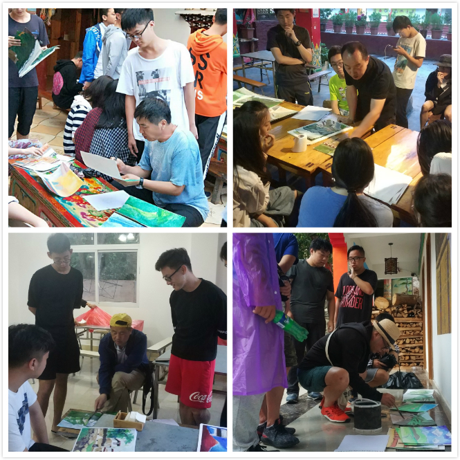 员工们置身于精彩纷呈的景观当中,在细致观察的基础上,通过自己的画笔将心灵感悟和主观情感表现在画布中,以最简单的材料和形式,激发最丰富的人与物之间的艺术互动。带队老师们不时为员工进行指导,亲自上手为同学修改调整,并定时安排集中检查,将大家的作品汇集到一起,带领员工互相学习和交流,使员工得到更多的启发和锻炼。
