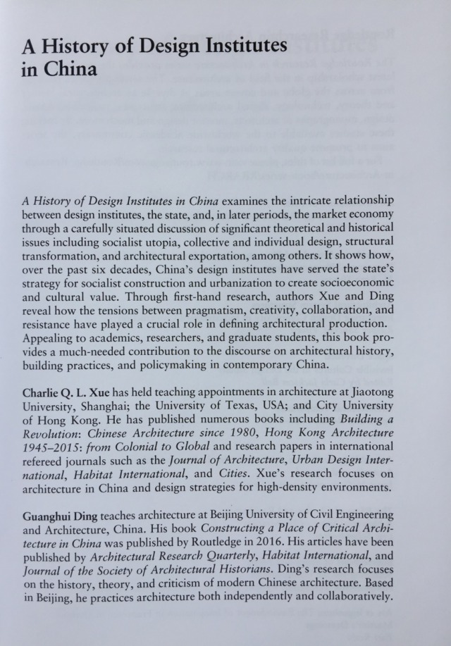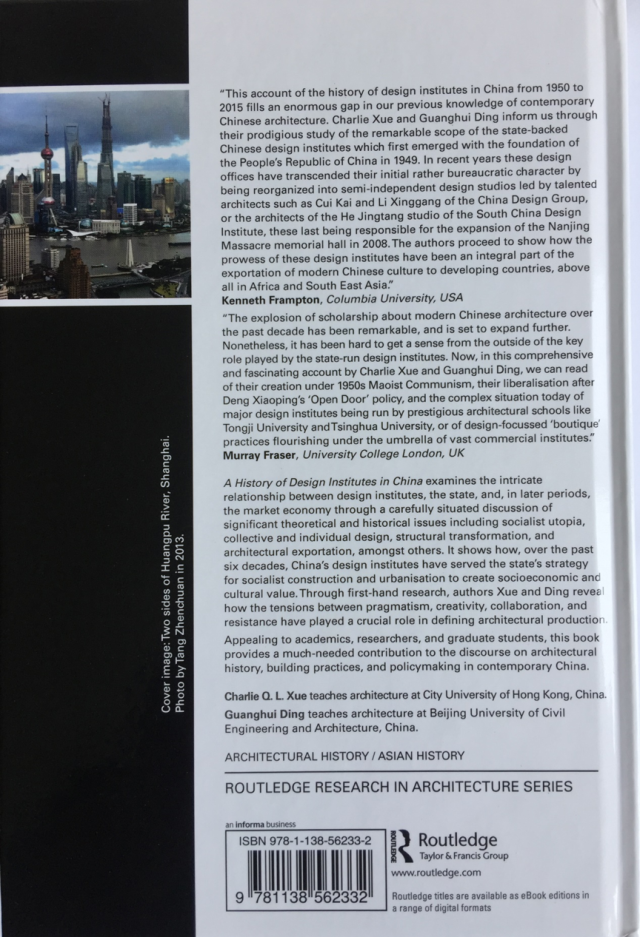 在中国建筑创作逐渐繁荣、多元发展的背景下,该书通过审视国有设计院的实践,试图重新评估它们在社会主义现代化建设过程中所发挥的独特作用以及当下面临的严峻挑战。本书是丁光辉老师在Routledge出版的第二本英文著作。2016年,他的学术专著Constructing a Place of Critical Architecture in China同样由该出版社出版,讨论了建筑学术期刊对繁荣建筑创作的贡献。