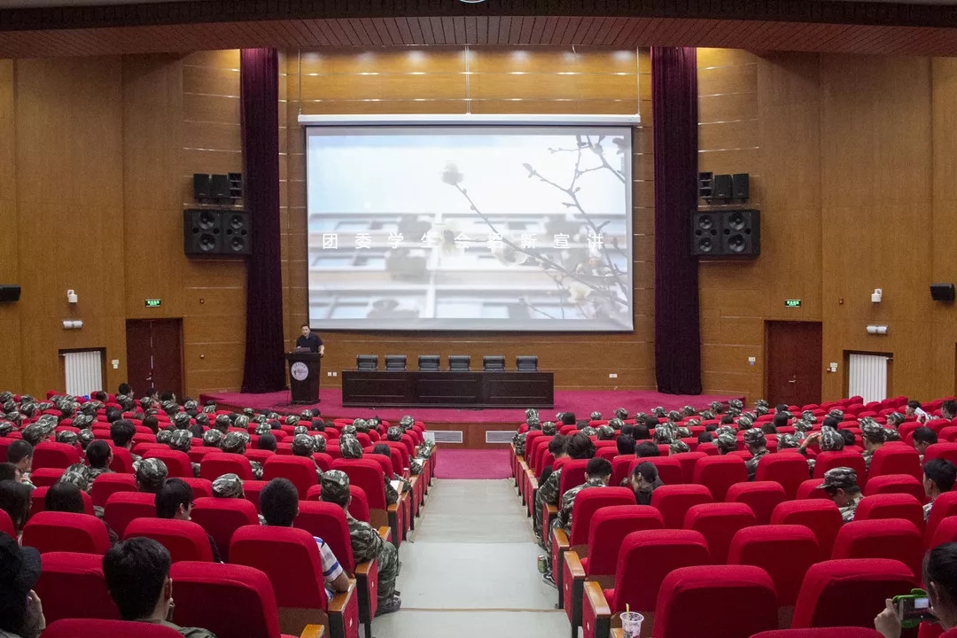 9月18日晚,正在军训的yl7703永利2018级本科新生齐聚大兴校区报告厅,团委员工会员工干部来到大兴对全体新生进行慰问并召开团委员工会宣讲会。公司党委副书记王秉楠、团委书记黄庭晚、17级辅导员陆冰清、18级辅导员孙萌、yl7703永利团委员工会员工干部以及全体大一新生参加此次会议。