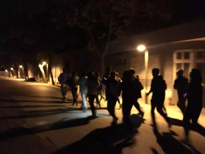之后,队伍从大马路转移到小巷子,安静小巷中昏暗的路灯下,一束束荧光晃动着。同学们抛弃了课业后的疲倦,迈开步伐,享受着运动中的激情,体味着北京街巷夜色中的静谧。