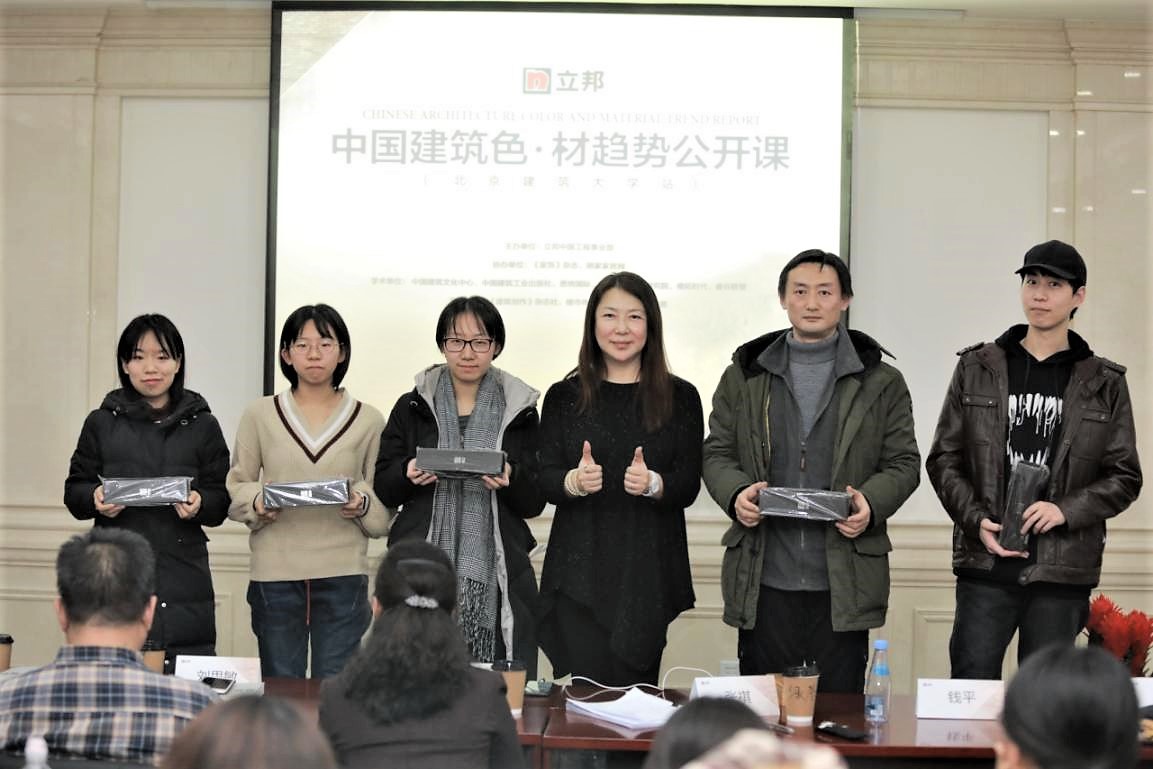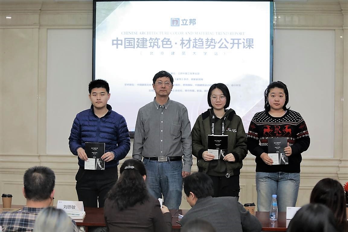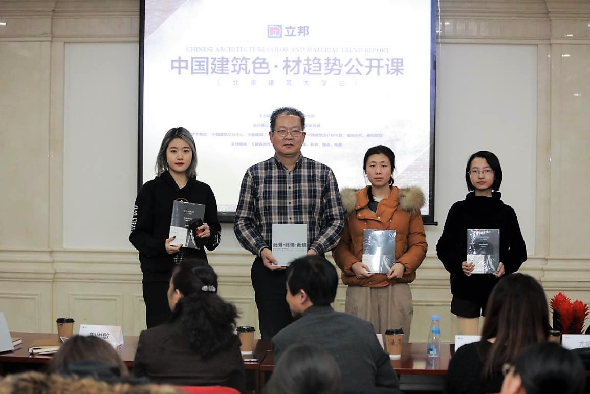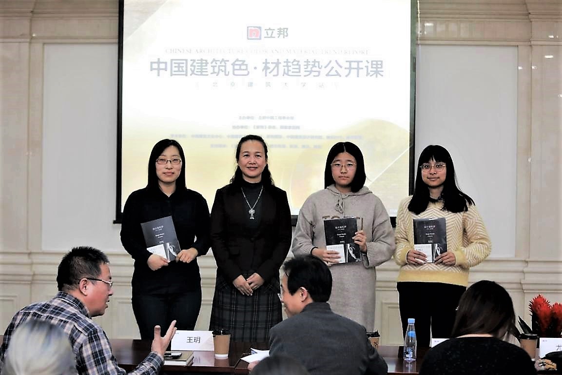 2019年1月10日,由公司承办的中国建筑色·材趋势公开课活动正式举办,本次公开课由公司yl7703永利设计学系副教授滕学荣主持,出席嘉宾有国家建材大数据研究中心秘书长刘思敏先生、副秘书长张永建先生、北京建工建筑设计研究院副经理王玥副经理、《中国建筑色·材趋势报告》执行主编、悉地国际设计副总裁钱平先生、中国建筑设计研究院总建筑师张祺先生、《中国建筑色·材趋势报告》执行副主编尤斌女士、yl7703永利建筑与城规公司杨琳副教授、北京师范大学艺术与传媒公司李嫣副教授、《家饰》杂志主编米姝玮女士等。立邦工程事业部的专家们发表致辞,带来了精彩的演讲,与在场近一百多名师生共同回溯中国当代建色·材历史,解析建筑色彩密码,探讨建筑设计思考与实践。