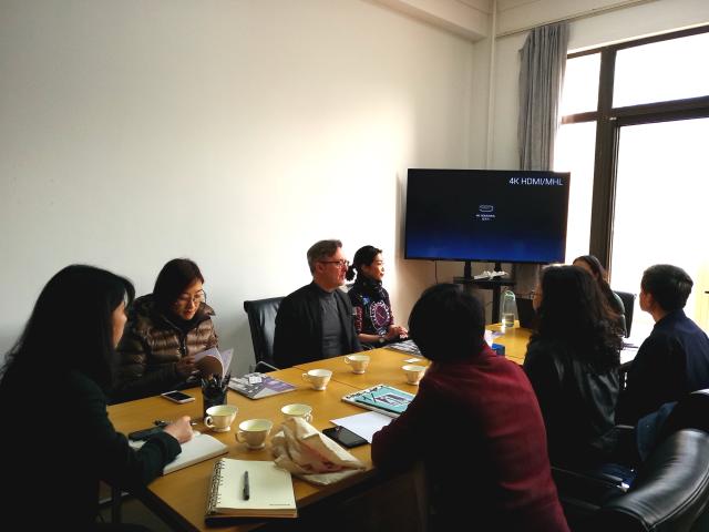 首先,赵晓红处长对麦克林教授一行的来访表示欢迎。她讲到,两校已签署 《合作框架协议》及《“1+1+1”硕士双学位联合培养项目合作协议》,未来将在教师互访、教学交流、“1+1+1”硕士双学位联合培养、暑期公司等方面开展合作与交流。她还介绍了公司于2017年发起成立的“一带一路”建筑类大学国际联盟的发展概况,邀请格拉斯哥美术公司加入联盟,在联盟框架下进一步深化两校的合作关系。