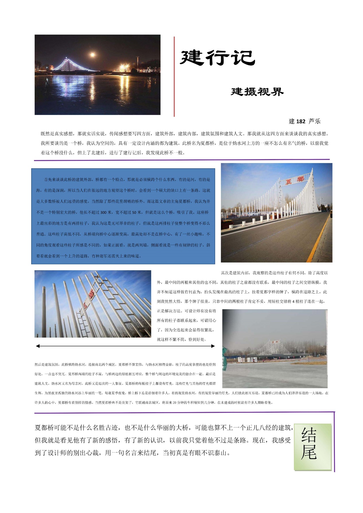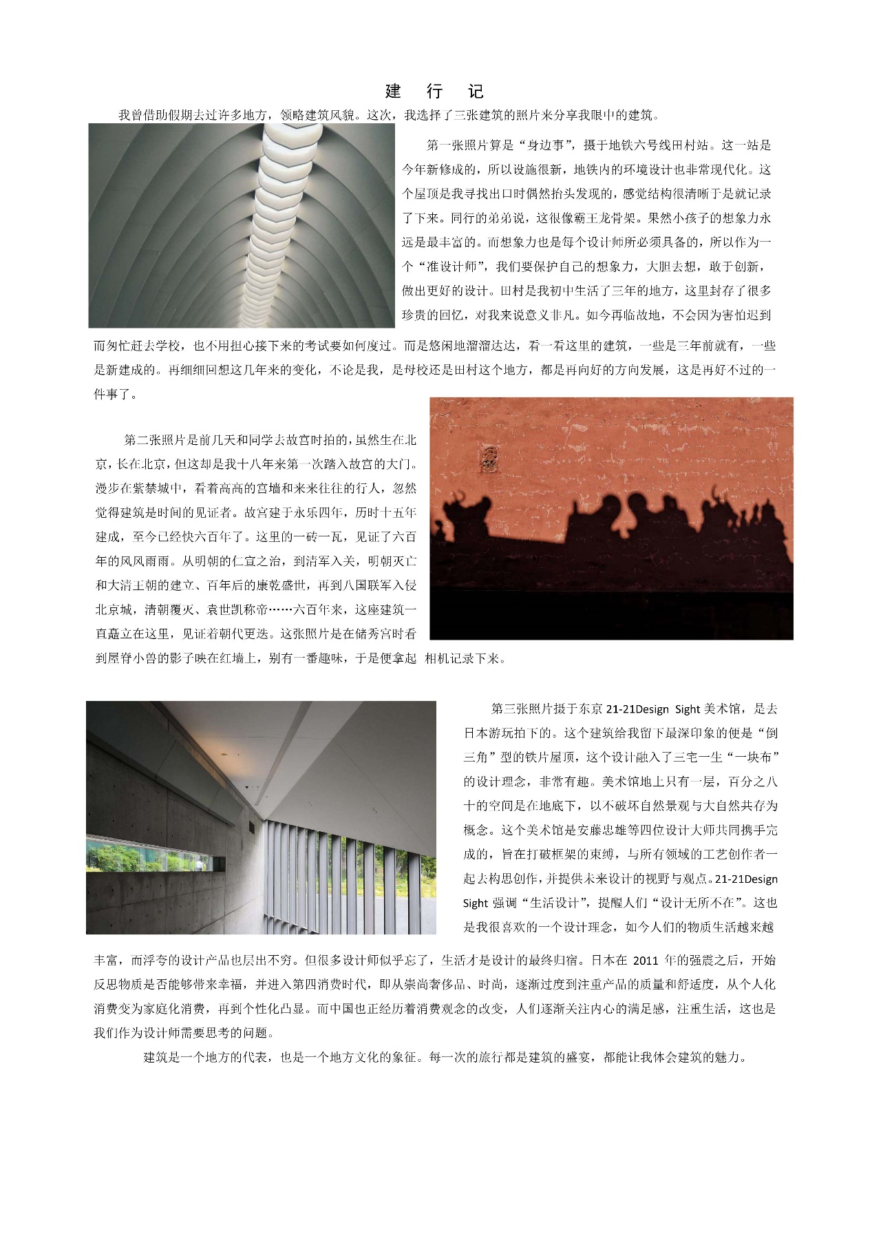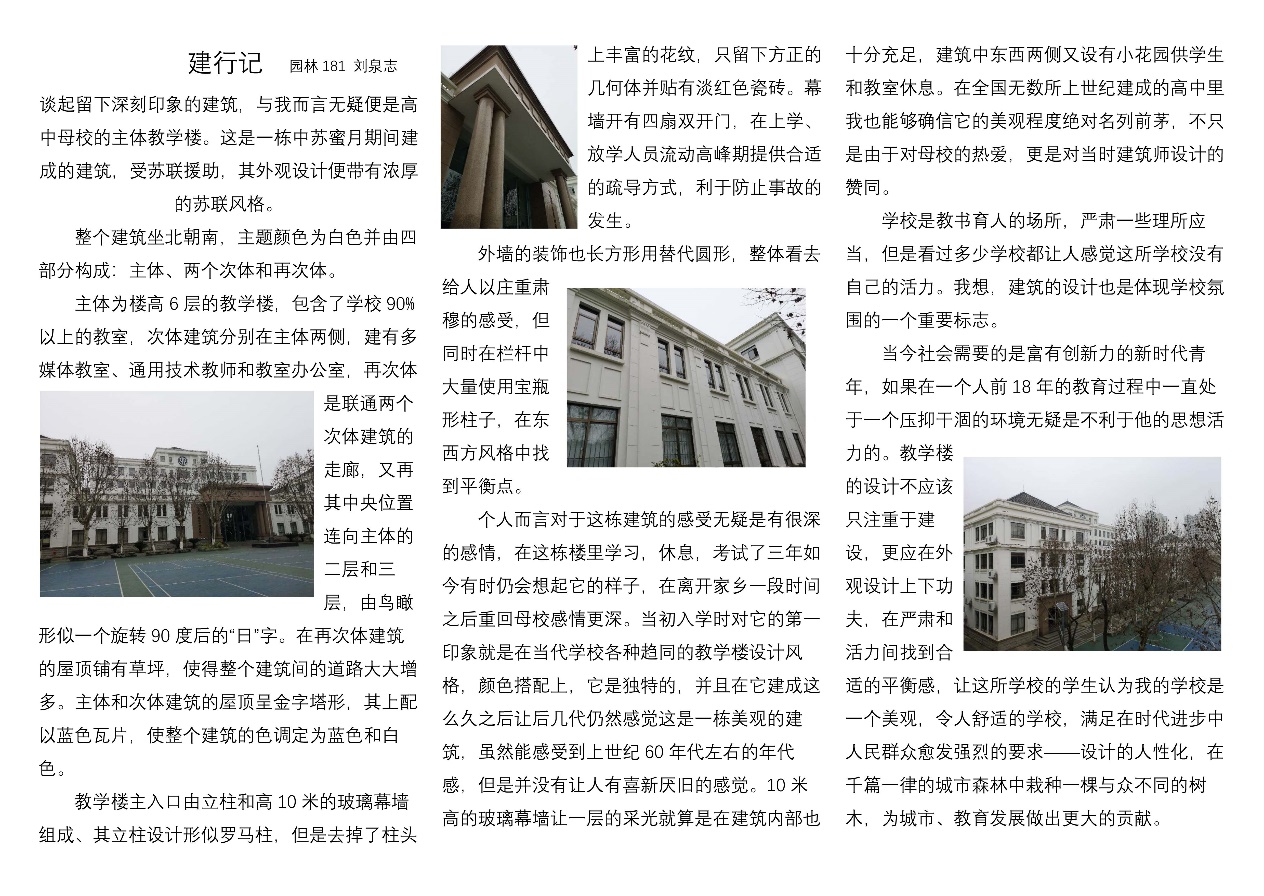 近期,团委员工会将选取“建行记”提前投稿的作品中,文字或排版较好的进行定期推送,供大家参考或批评。让我们跟随建院学子的“建行记”,共飨建筑文化之魅力。