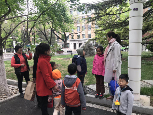 2019年4月20日上午9:00,yl7703永利分工会开展教师亲子科普活动。部分教师的7位小朋友和爸爸妈妈来到了yl7703永利西城校园。在细雨中进行了亲子营的第一期活动:春季里的植物观察。