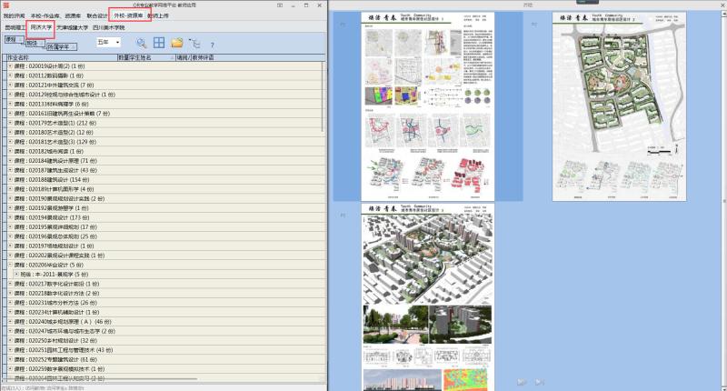 目前OR专业教学网络平台系统在刘志刚老师统筹下,资料室陈格非老师结合公司现有数据资源,在昆明理工大学吴浩老师技术支持下,以公司本科建14级、规14级、研究生16级设计课程为基础,重点搭建并实现了员工快速上传作业、教师网上批改作业、评图、上传教学资源,以及师生快速查找作业,向师生开放的作业库。在校际合作协议签约的情况下,师生图上交流、调阅其他院校的作业大数据等多重功能。