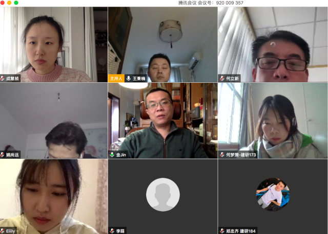 分管研究生事务的金秋野经理对于同学们的学业给予了指导,金老师表示,疫情当前,同学们既要做好持久战的准备,又要做好随时复学的准备,这就要求同学们保持一个良好的学习状态。对于居家学习,金老师向同学们分享了通过公司VPN进入知网的方法以及国际图书馆等一系列线上学习渠道,告知同学们要合理利用居家时间,运用上述论文基本利器潜心自己的学术研究;另外,针对同学们提出的笔记遗留在公司的问题,金老师告知同学们多多和导师、同学沟通,进行论文思路的再回忆;最后,金老师对同学们的生活也进行了关心,提醒同学们注意健康生活,合理膳食,加强锻炼,鼓励大家一定要对战胜疫情充满信心。