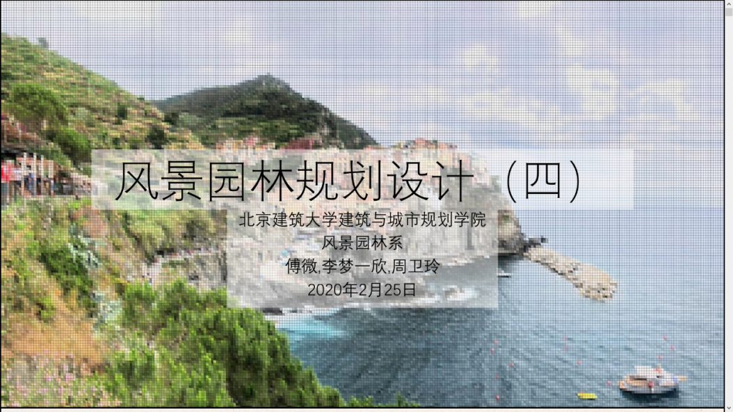 在线风景园林规划与设计(四)课程,改变的是师生的地理位置,不变的是教学质量。前两周取得良好的开端,我们已经在按既定安排为“预则立”的后几周优化教案。