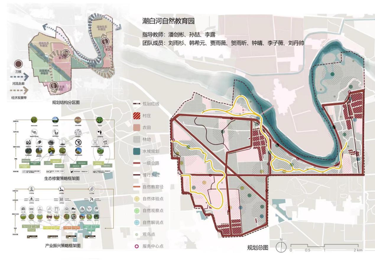 天津城建大学组《基于朴门永续理念的设计》基于潮白河,这个位于首都边界的城市蓝绿生态廊道,将如何在生态本底的基础上实现自然教育和文旅产业的双融合作为本次规划的切入点,提出朴门永续理念,提出以生态系统服务为基础、以文化旅游为辅助、以产业融合为策略、以自然教育为目标的潮白河自然生态园的设计方向,结合都市农业、人文历史、生态景观、自然科普四个方面,提出多种区域及空间解决策略。最终打造一个具有长久生命力和生态吸引力,兼具科教游憩、生态涵养和产业创收的自然科普生态园。