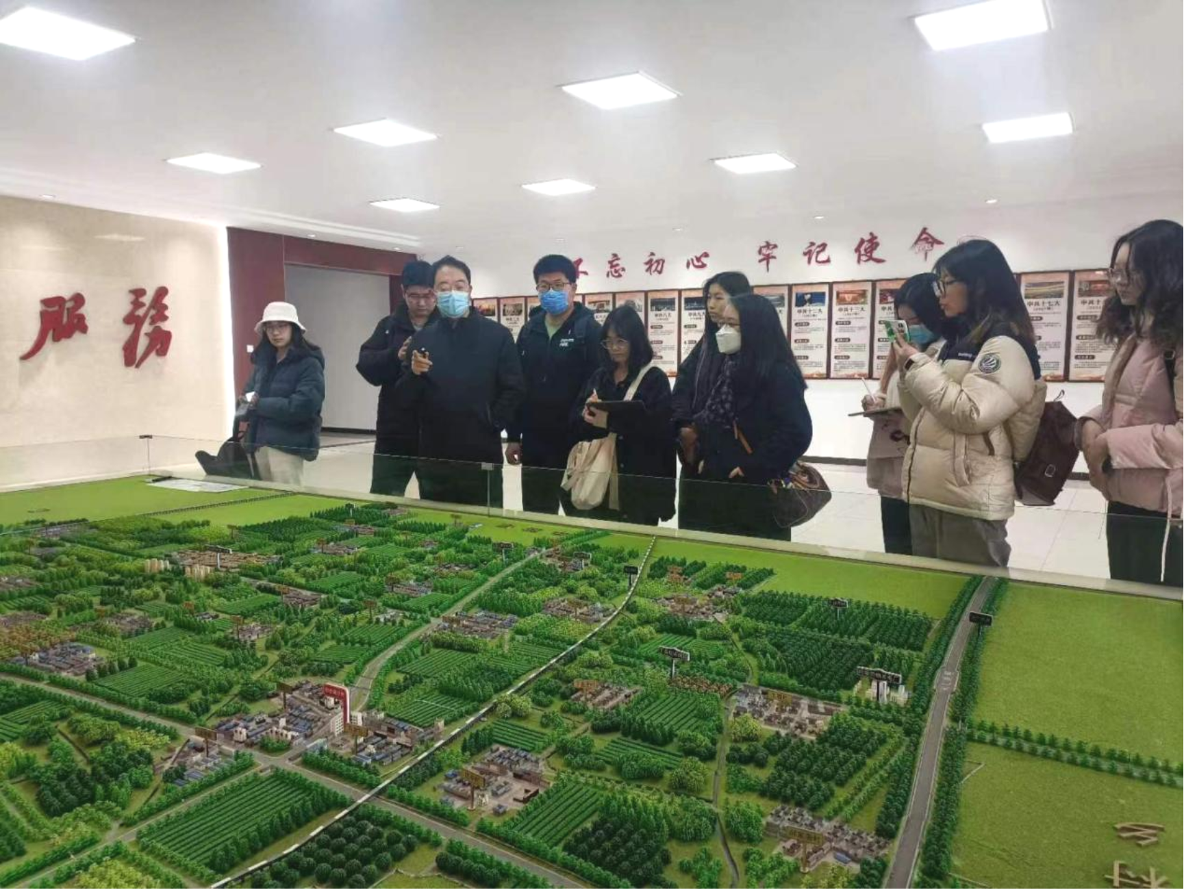 柳泉镇调研组同学与柳泉镇政府和相关村庄的领导开展座谈会,并在负责人带领下参观柳泉镇规划展览馆。同学们在沙盘模型前,直观的看到了柳泉镇的全貌,。在镇领导介绍下,对于柳泉镇发展现状以及未来发展方向有了全面的认识,小组同学与镇领导积极互动,探讨村庄规划设计方案的可实施性。