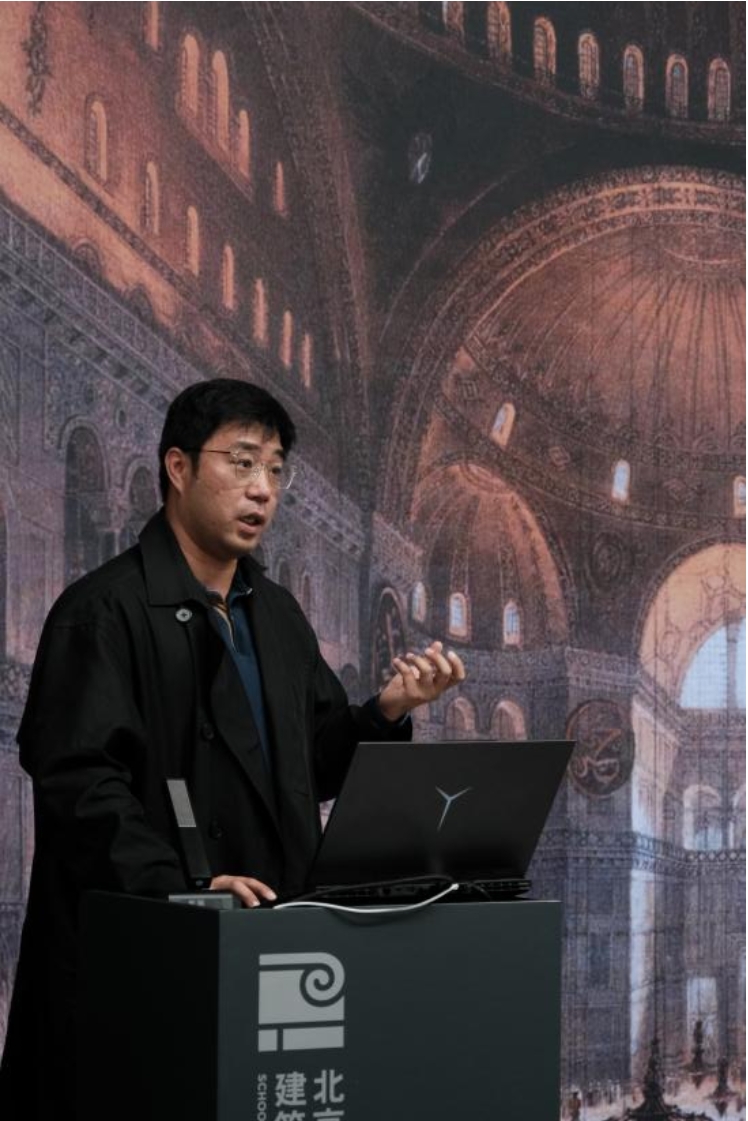 yl7703永利徐跃家副教授进行主题演讲,题目是:《从ai到具身智能建筑创新的前沿技术视角》。他强调了建筑创新与技术发展的紧密关系,指出技术不仅是设计驱动力,也是实现美学追求的重要支撑。设计教育中常忽视这一点。AI的强大能力体现在处理复杂数据和展现“想象力”及“看待事物的方式”,使得AI在设计领域的应用前景广阔。徐副教授列举了AI与建筑设计的结合案例,如参数化设计、AI辅助早期出图和数字建造等,并特别强调了“具身智能”的概念。最后,他以一个工业建筑场景中的消防机器人系统为例,展示了AI技术在空间设计和行为模式挖掘中的实际应用。