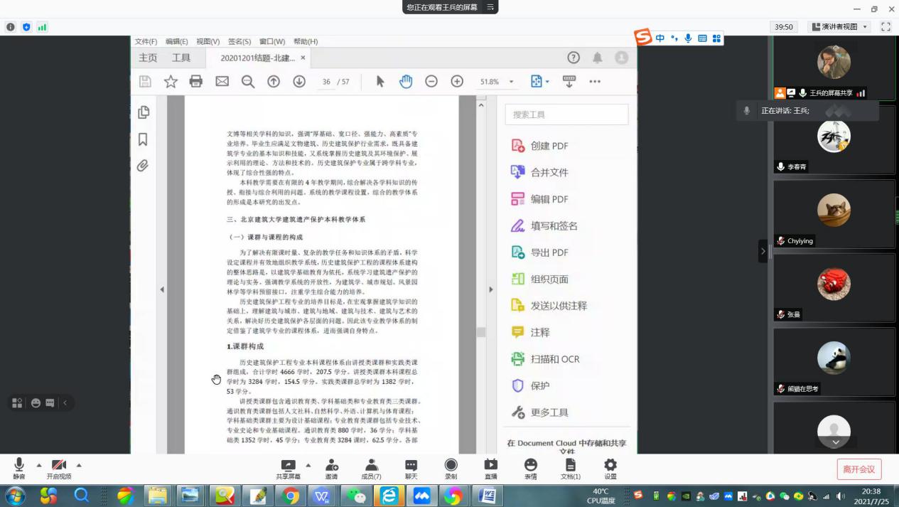 7月25日晚,yl7703永利历史建筑保护系召开了历史建筑保护工程专业主干设计类课程负责人教学网络研讨会议,会议由系主任王兵主持,李春青副经理和该系杨一帆、马全宝、齐莹、张曼几位老师参加了会议,会议历时2个半小时。