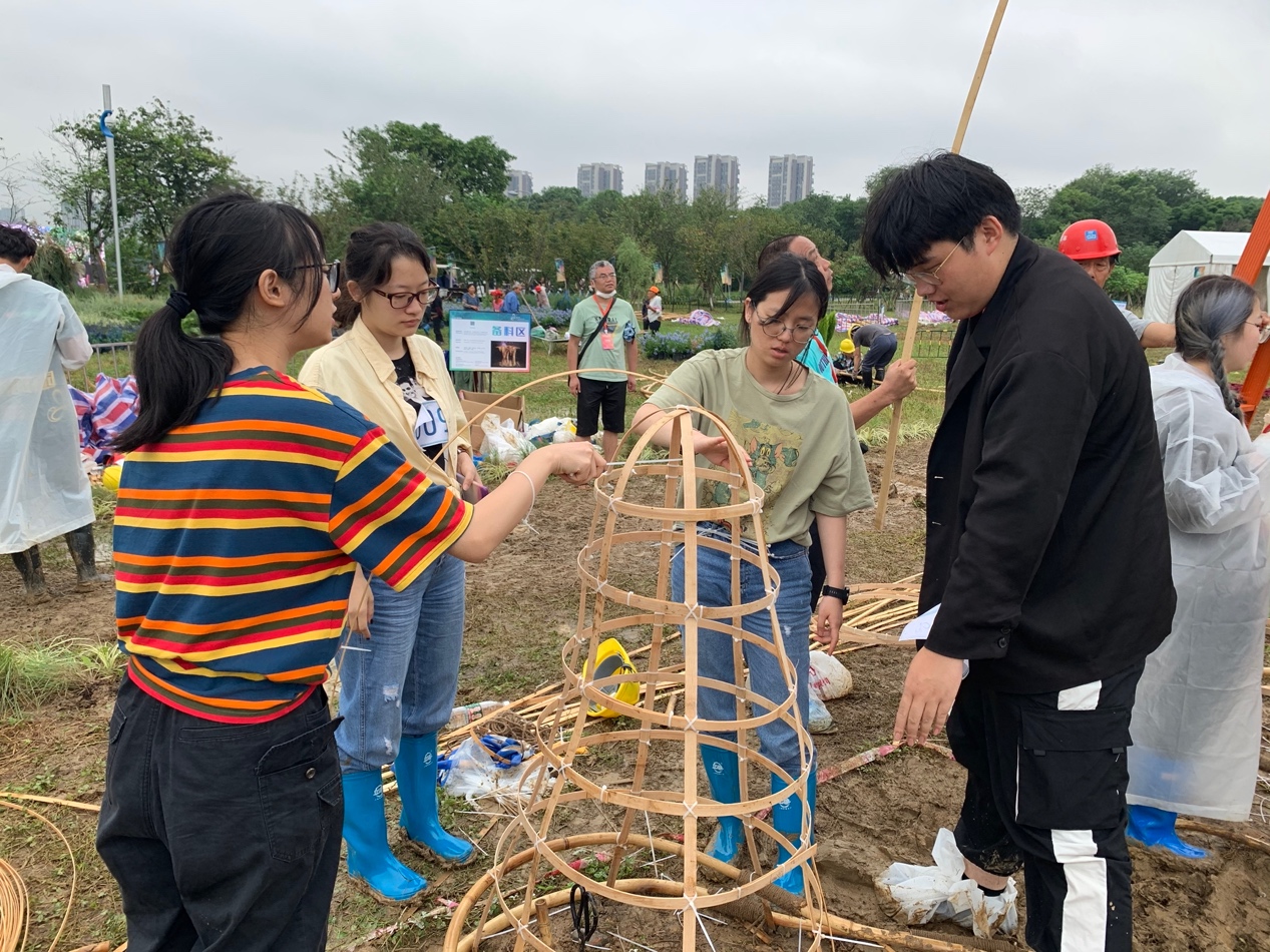 在搭建过程中,参赛团队克服泸县6.0地震、持续暴雨、场地泥泞等不利环境因素和突发状况,在主办方的协助和大力支持下顺利完成搭建。竞赛过程体现了北建大风景园林人的拼搏精神和团队凝聚力,磨练了师生的意志、韧性和专业实操能力。