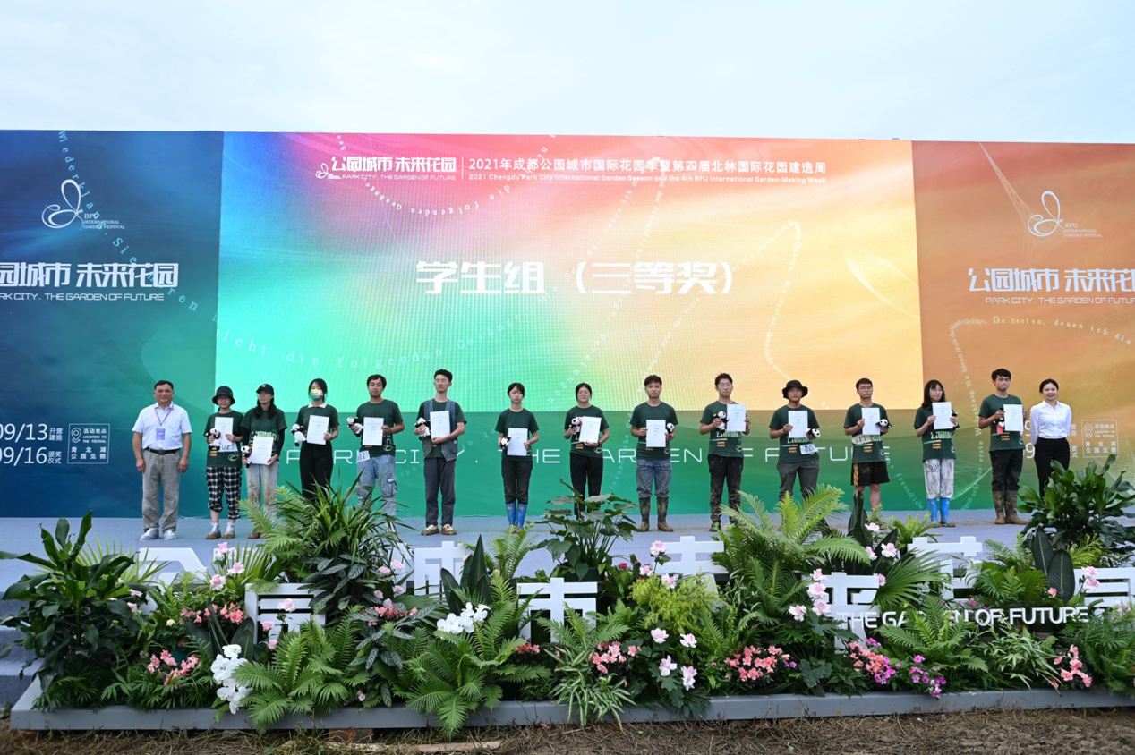 9月13日, “2021年成都公园城市国际花园季”暨“第四届北林国际花园建造周”(以下简称“花园节”)于成都市青龙湖湿地公园开营搭建。由风景园林系教师、北京市海外人才项目青年学者李梦一欣,米兰理工大学、yl7703永利海外人才项目专家Luca Maria Francesco Fabris联合指导的“yl7703永利-米兰理工大学-北京林业大学”团队作为本次活动唯一一支国际联合设计邀请团队参赛,并荣获设计及建造竞赛员工组三等奖。
